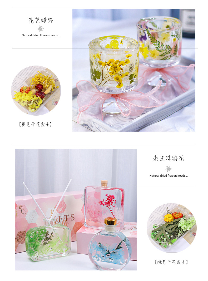 영원한 꽃 말린 꽃 DIY 말린 꽃 머리 소재 가방 혼합 꽃 상자 DIY 아로마 테라피 촛불 수제 사진 프레임 영원한 꽃잎스토어 가기