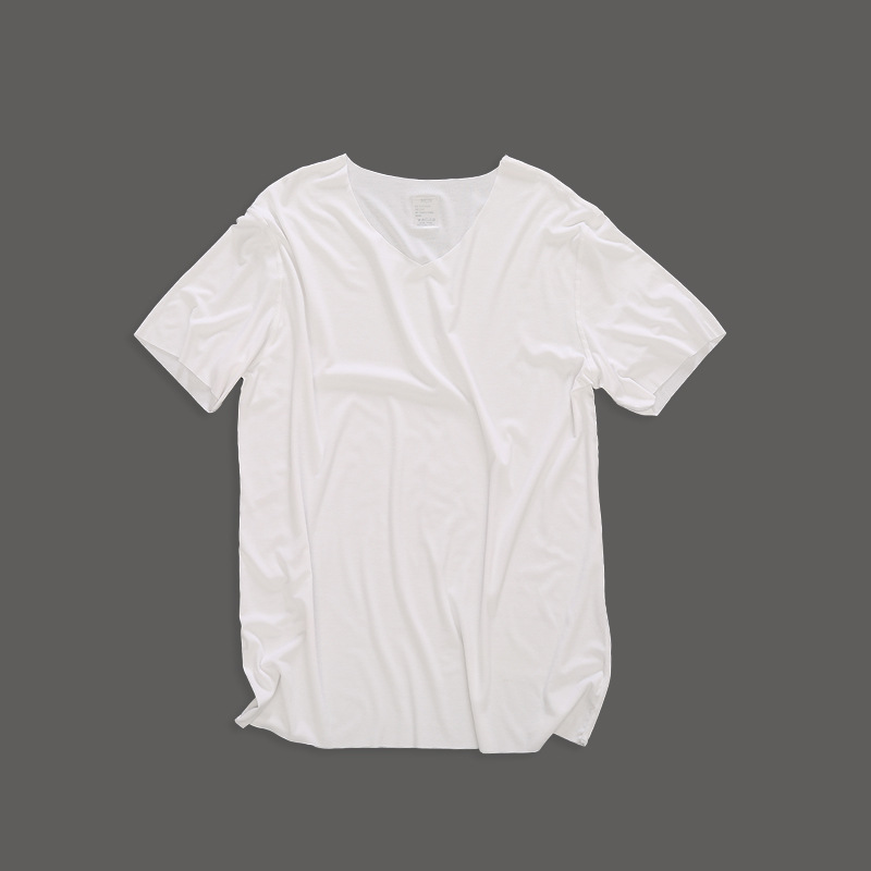 하이 스트레치 실크 미끄러운 모달 남성용 얇은 원활한 반팔 티셔츠 후속베이스 셔츠 홈 의류 잠옷 여름