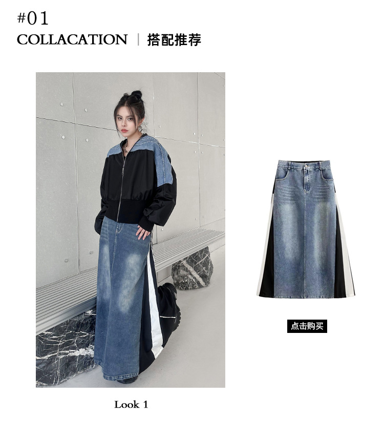 레트로 홍콩 스타일 대비 색상 스티칭 데님 짧은 코트 여성 봄과 가을 새로운 느슨한 슬리밍 캐주얼 지퍼 카디건 재킷스토어 가기