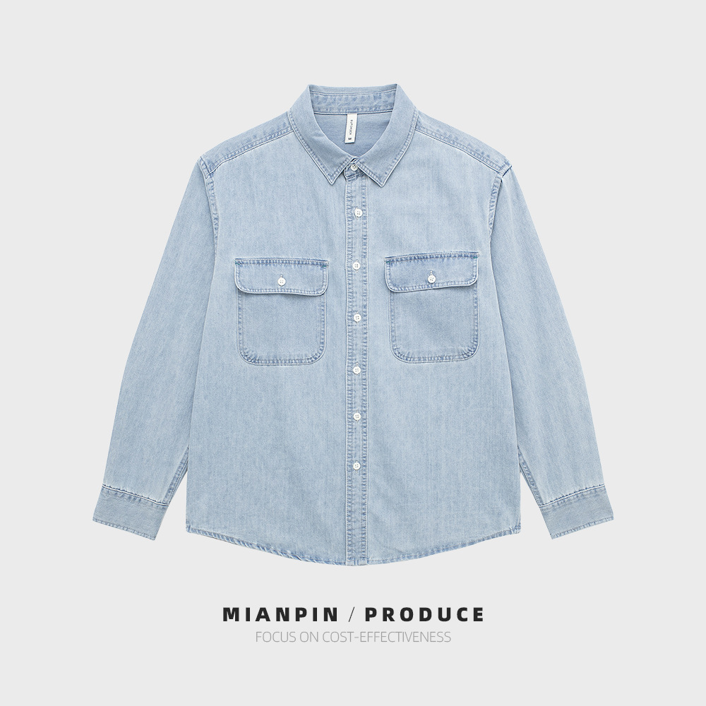 봄과 가을 남자 데님 긴 소매 셔츠 더블 포켓 아메리칸 스타일 툴링 스타일 느슨한 셔츠 학생 조수 D253