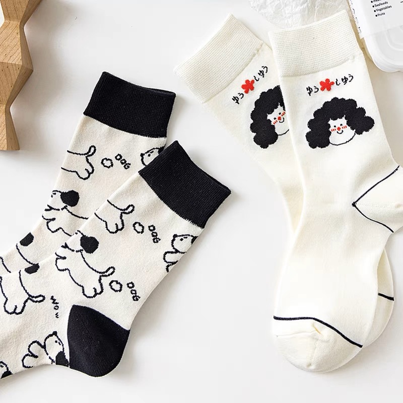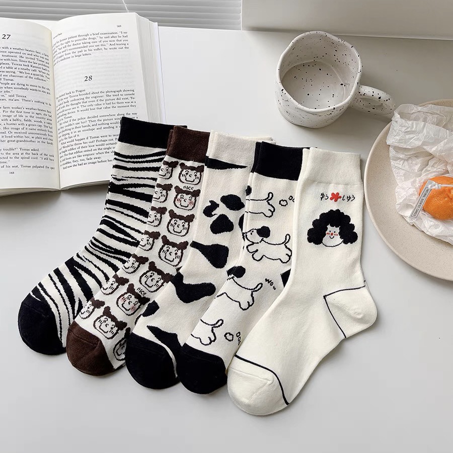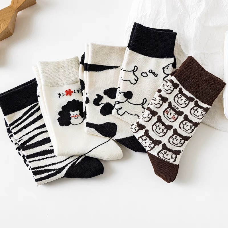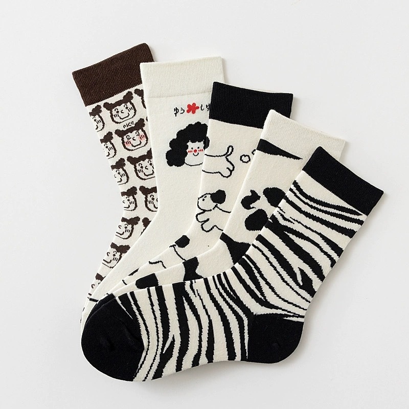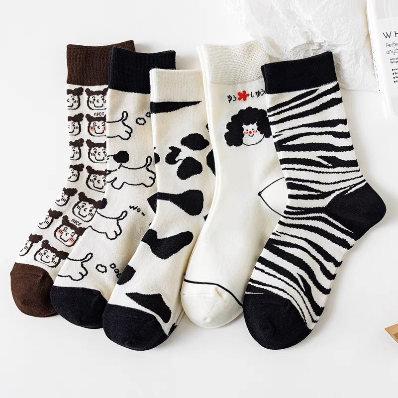 여성 in 유행 만화 창조적 인 커플 중반 송아지 양말 한국 귀여운 봄과 가을 여름 얼룩말 소 강아지 스타킹스토어 가기