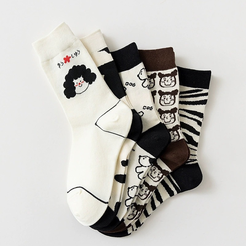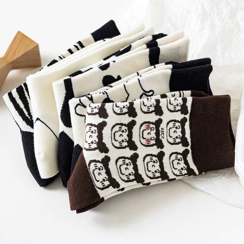 여성 in 유행 만화 창조적 인 커플 중반 송아지 양말 한국 귀여운 봄과 가을 여름 얼룩말 소 강아지 스타킹