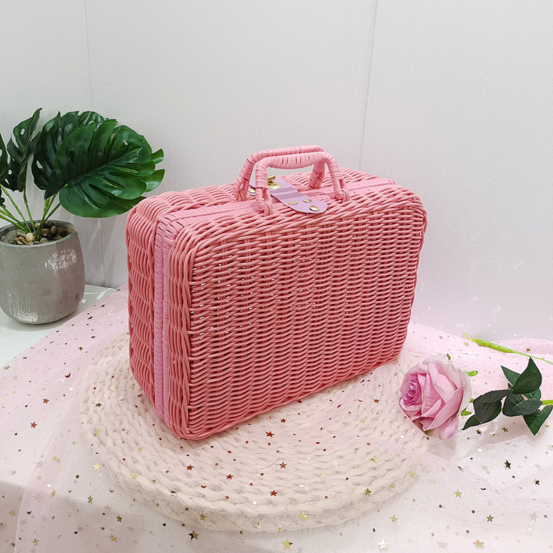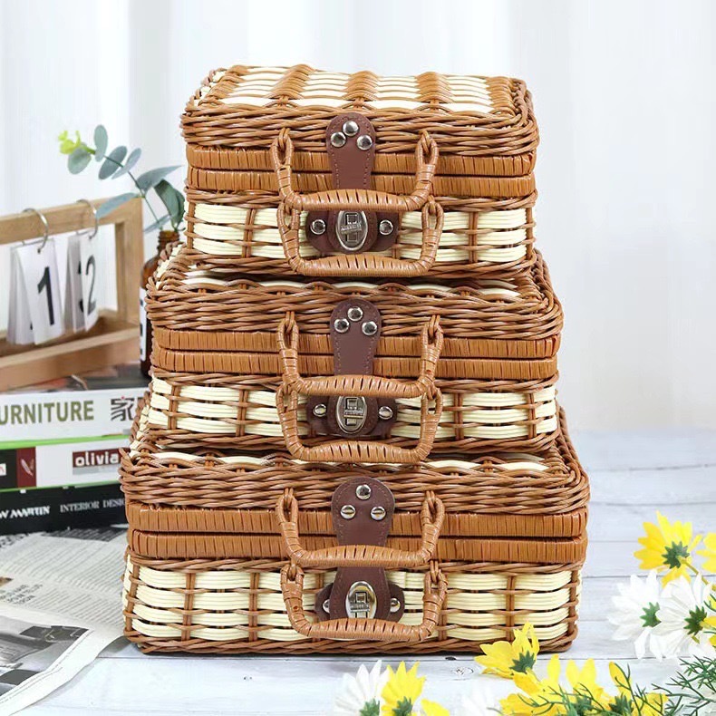 새해와 축제 선물 상자 사진 소품을위한 등나무 같은 짠 여행 가방 선물 상자 손으로 짠 보관 바구니