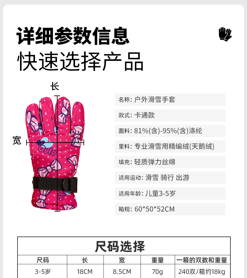 야외 스포츠 방풍 따뜻한 장갑 겨울 어린이 스키 장갑 패션 만화 성격 유행 따뜻한 장갑