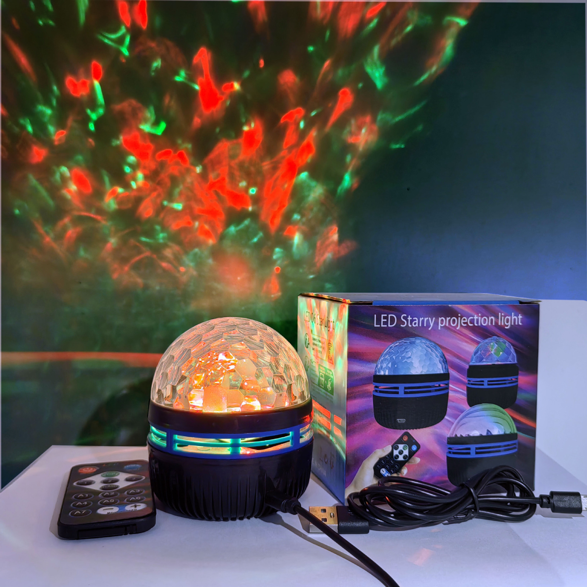 Q6 워터 패턴 리모컨 매직 볼 프로젝션 램프 창의적인 테이블 램프 로맨틱 장식 야간 조명 별이 빛나는 하늘 오로라 분위기