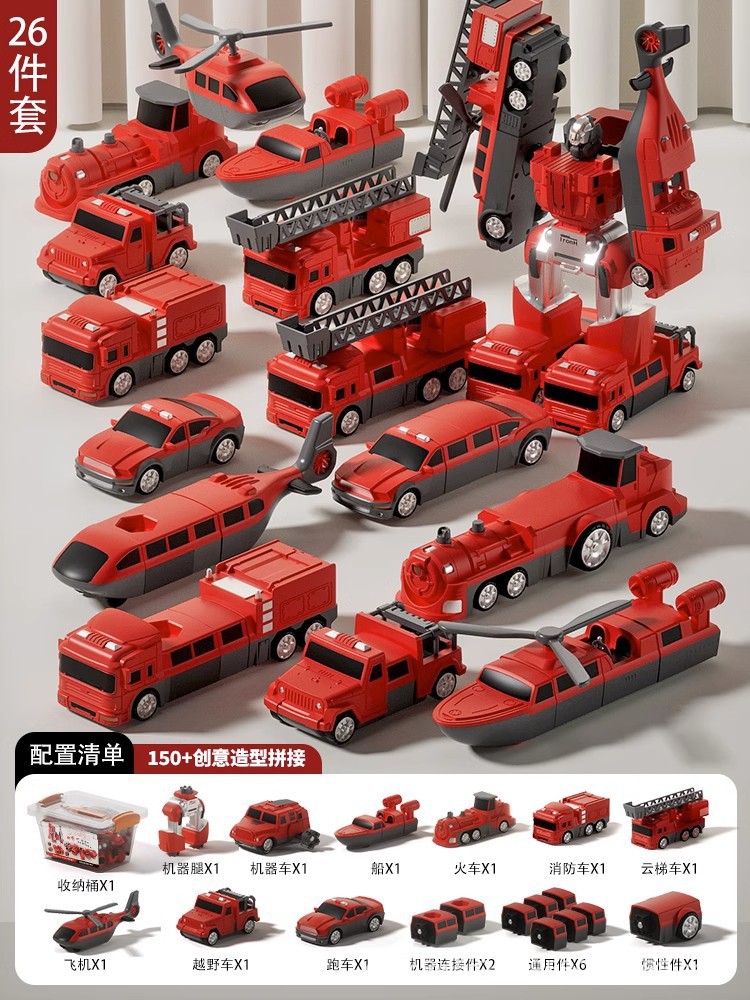 어린이 자동차 장난감 소년 엔지니어링 자동차 세트 변형 퍼즐 2 소방차 5 아기 생일 선물 3 세 4