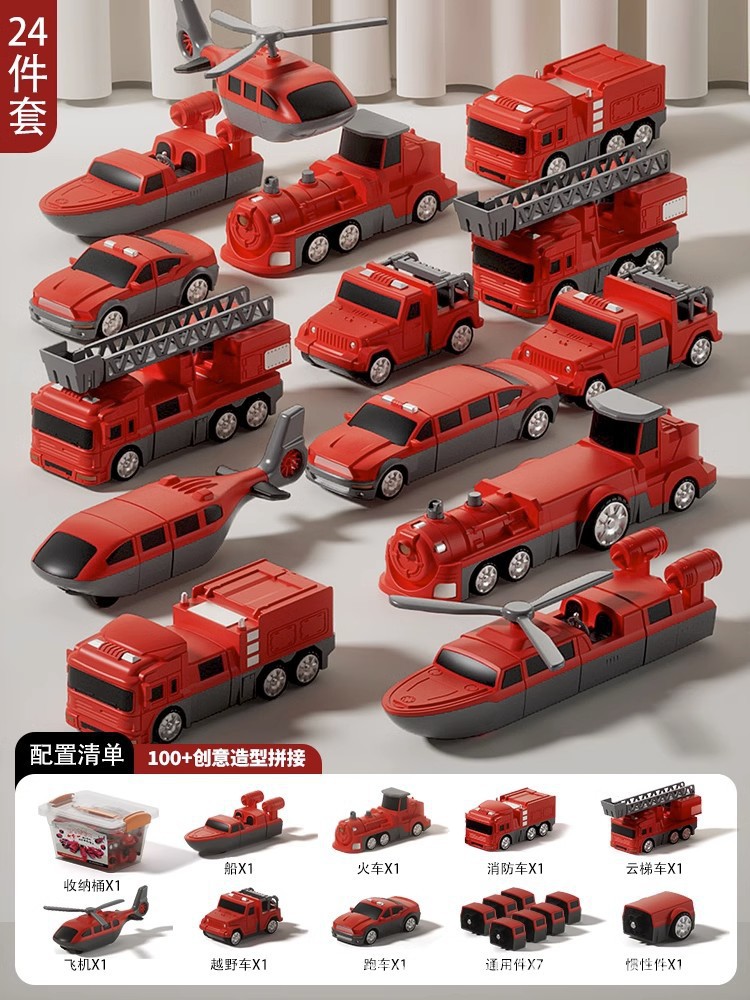 어린이 자동차 장난감 소년 엔지니어링 자동차 세트 변형 퍼즐 2 소방차 5 아기 생일 선물 3 세 4스토어 가기