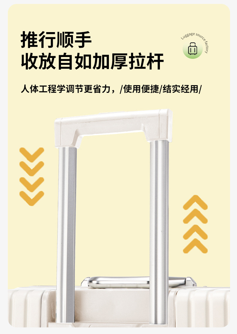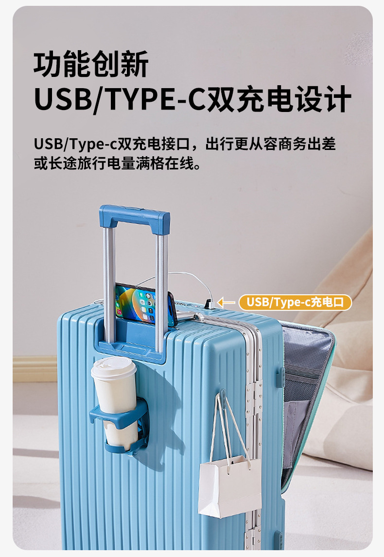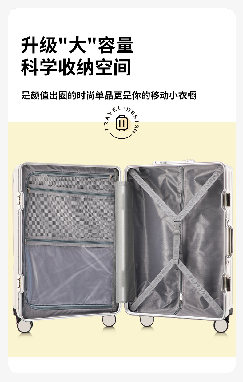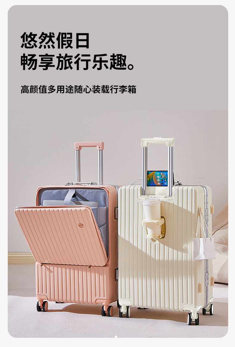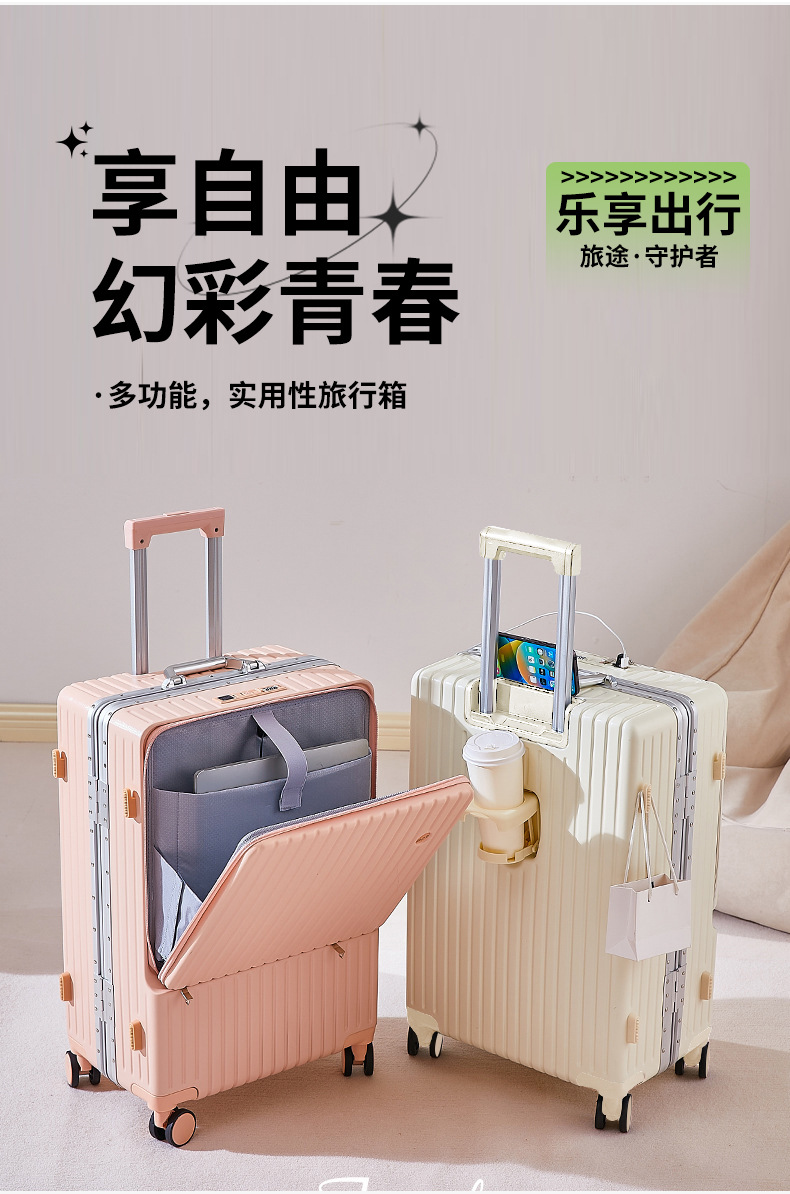 새로운 프론트 하프 오프닝 알루미늄 프레임 수하물 케이스 20 인치 트롤리 케이스 높은 컬러 값 다기능 여행 암호 상자 26 인치