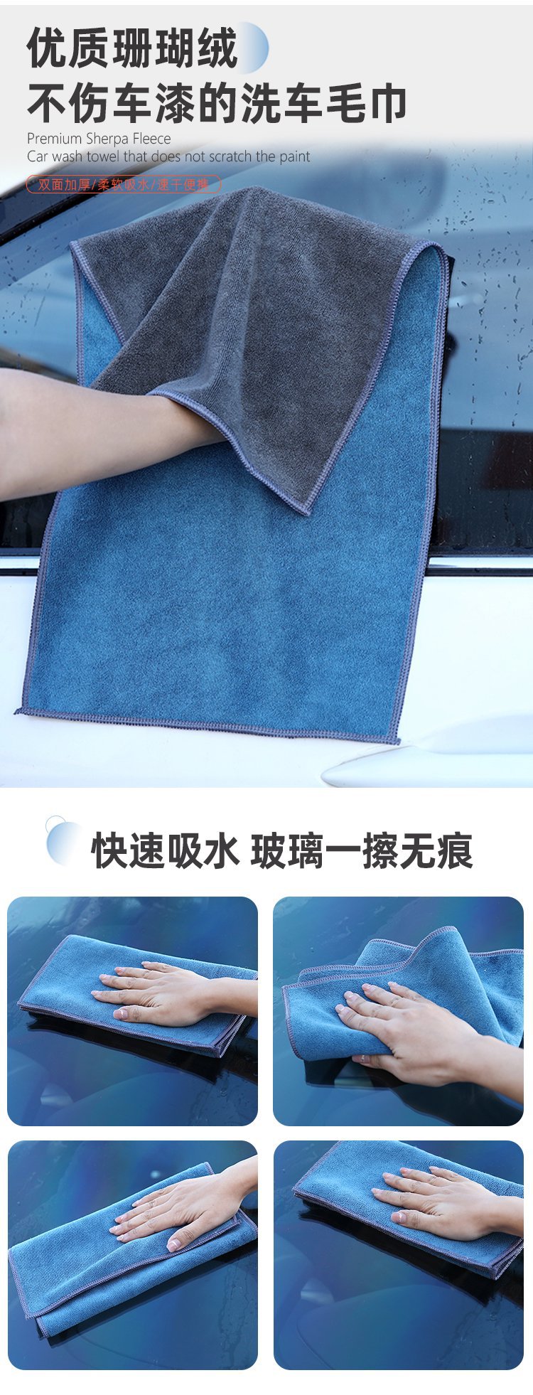 마이크로 파이버 복합 세차 수건 특수 린트 프리 흡수 양면 세차 천 대형 세차 수건스토어 가기
