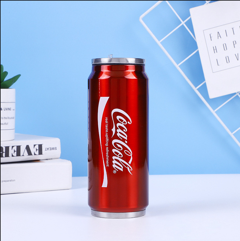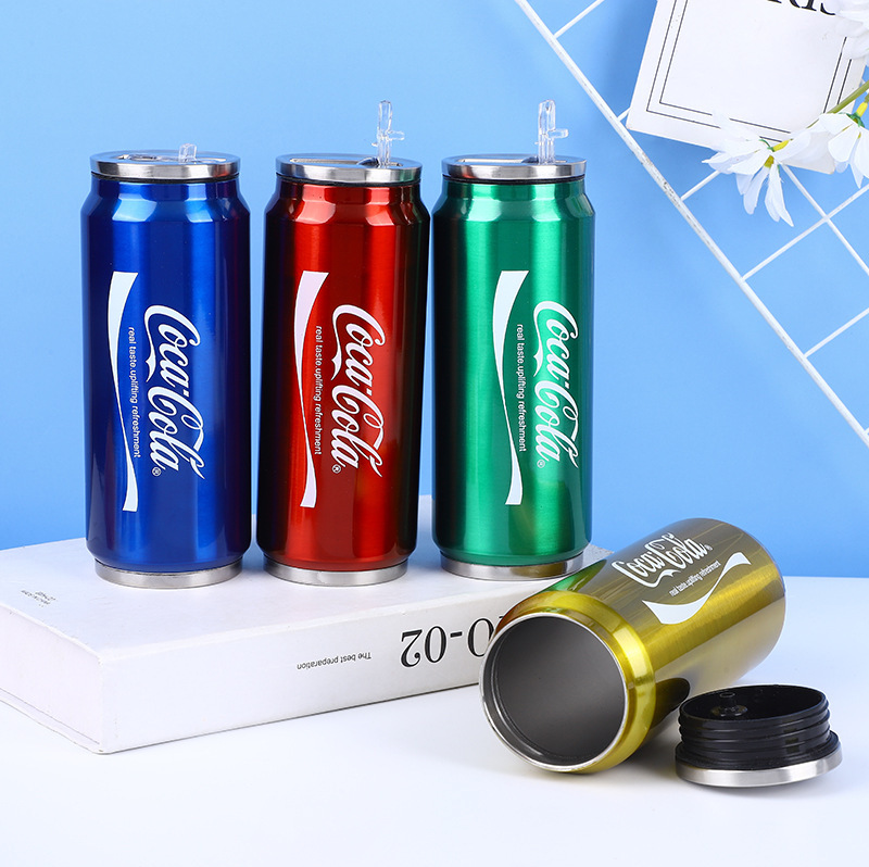 새로운 창의적인 콜라병 모양 304 스테인리스 이중 단열 텀블러 휴대용 간단한 빨대컵 학생용 휴대용 컵