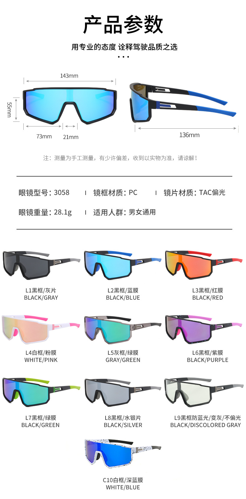 새로운 스포츠 선글라스 재고 다채로운 통합 편광 선글라스 국경 야외 3058 선글라스