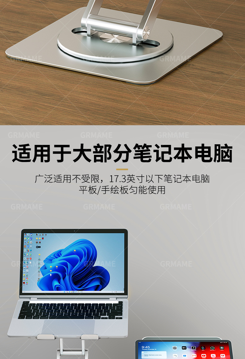 노트북 스탠드 컴퓨터 받침대 높이 조절 가능 올 메탈 접이식 회전식 높이 조절 가능