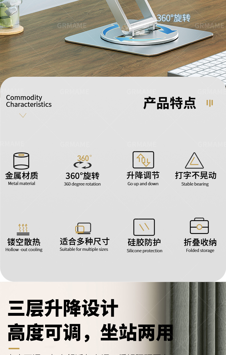 노트북 스탠드 컴퓨터 받침대 높이 조절 가능 올 메탈 접이식 회전식 높이 조절 가능스토어 가기