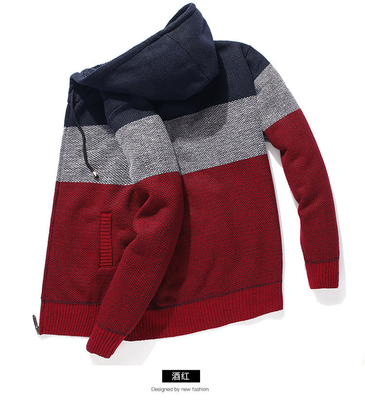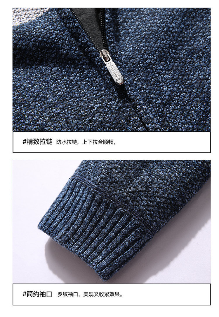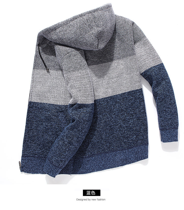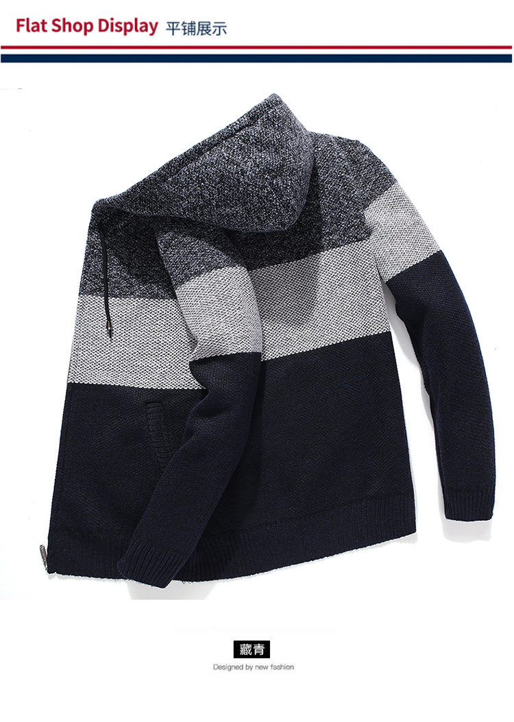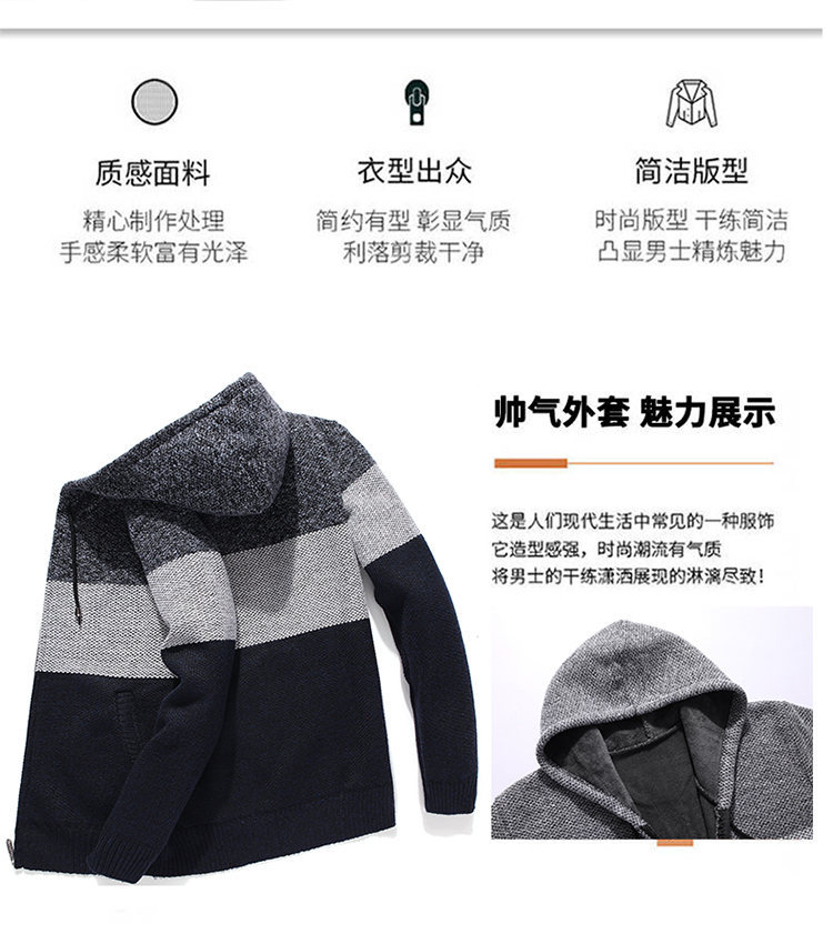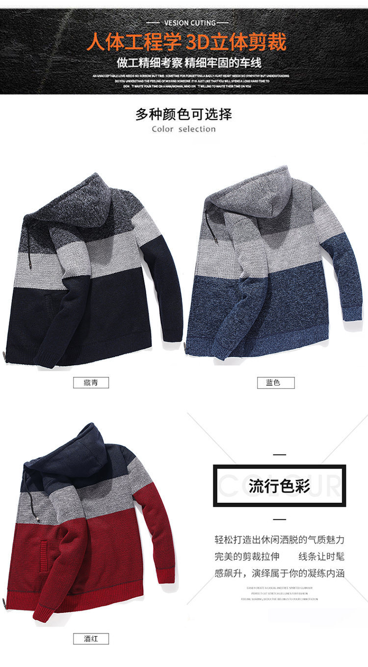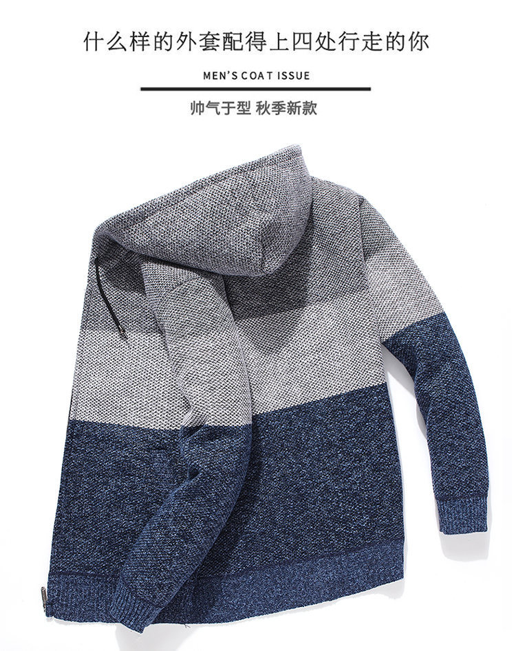 국경 간 대외 무역 세대 가을과 겨울 새로운 아마존 남자 후드 컬러 매칭 기모 두꺼운 지퍼 니트 카디건