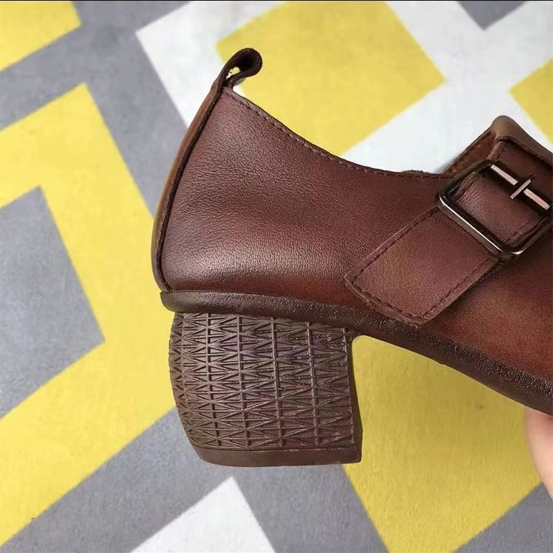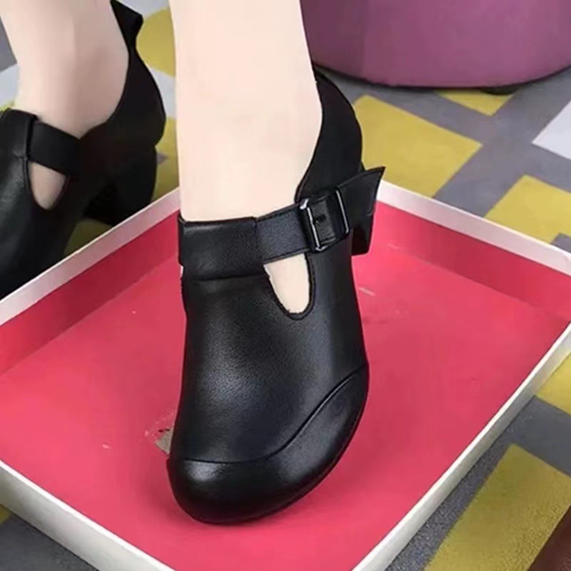 2023 캐주얼 두꺼운 발 뒤꿈치 여성 중간 뒤꿈치 편안한 미끄럼 방지 부드러운 바닥 어머니 신발 봄과 가을 새로운 올 매치 여성 신발 도매스토어 가기
