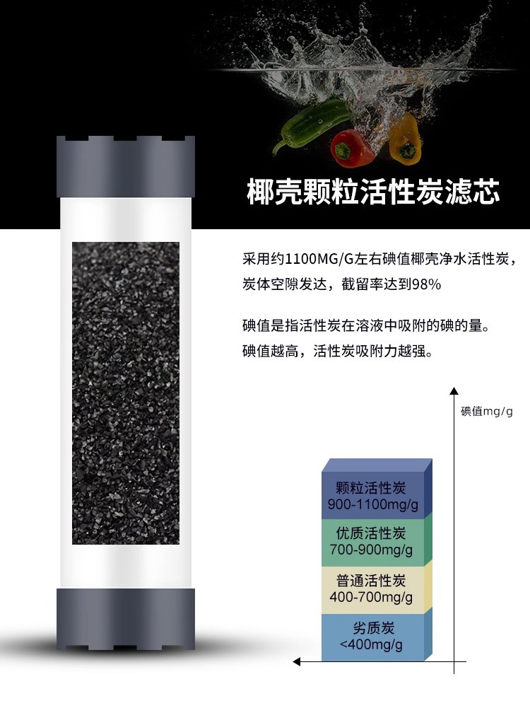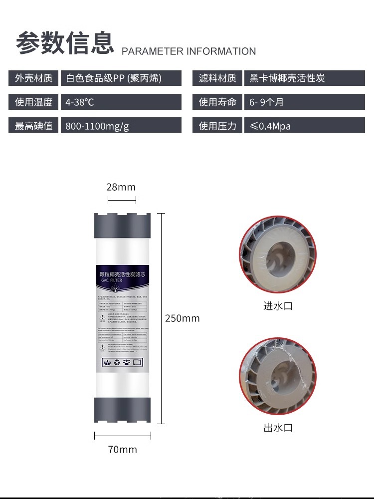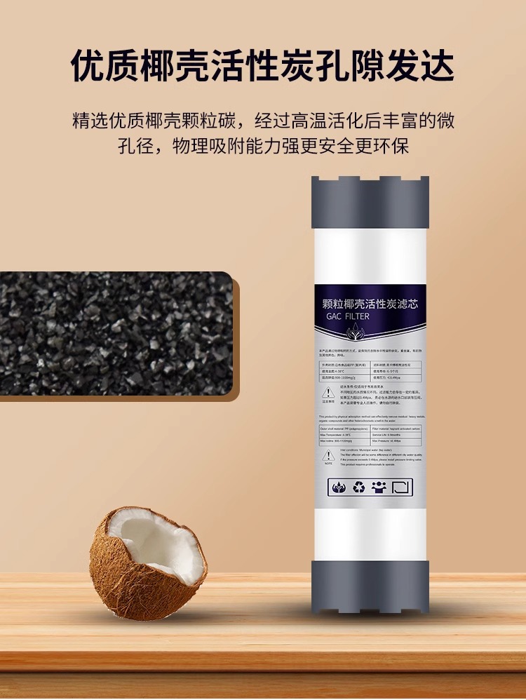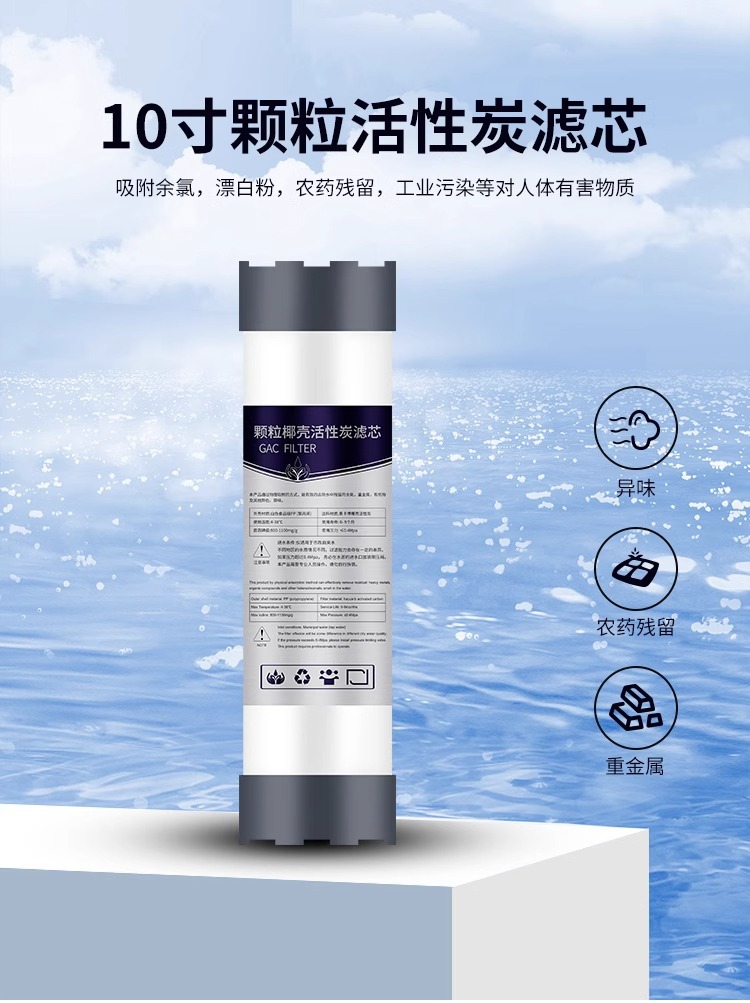 10 인치 과립 활성탄 1100 요오드 가치 수입 탄소 가정용 정수기 주방 필터 요소 전면 UDF 리어 코어스토어 가기