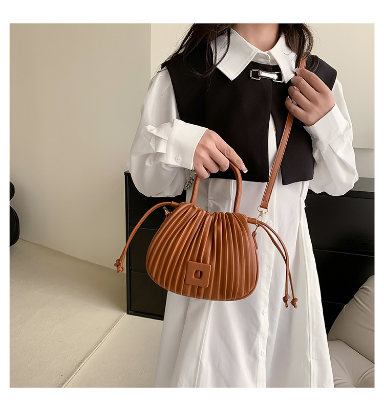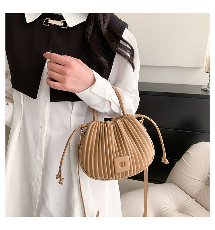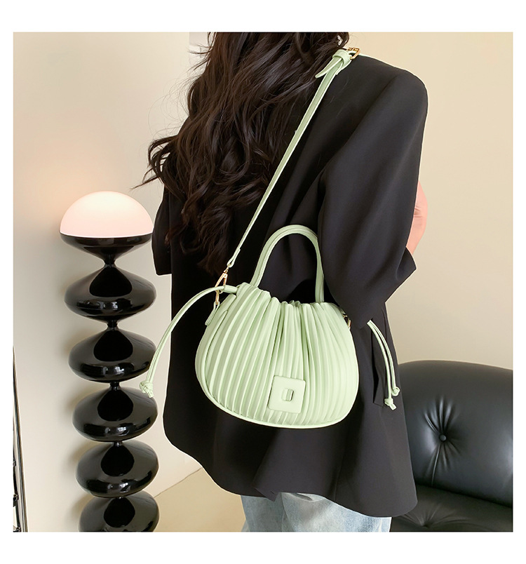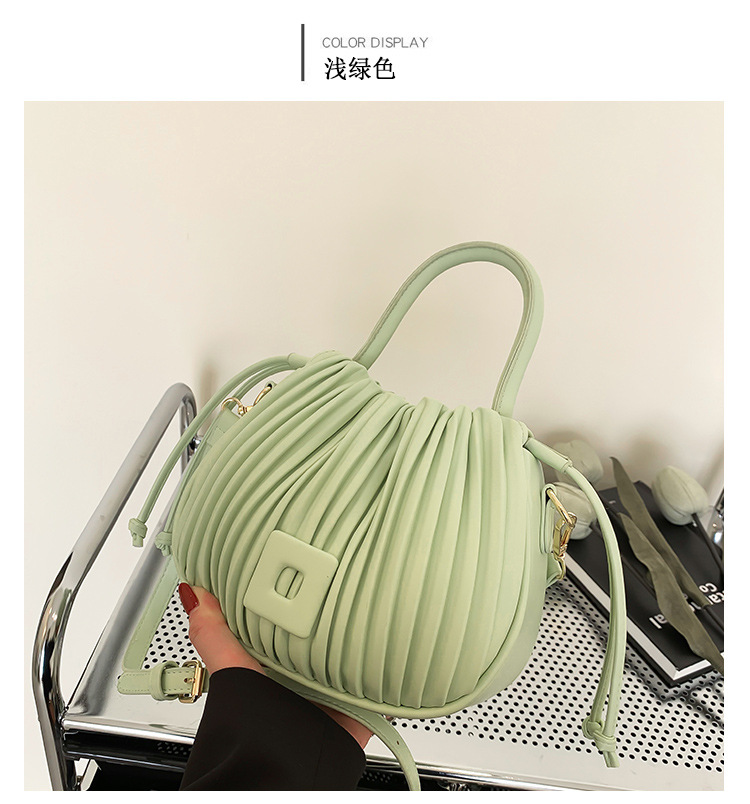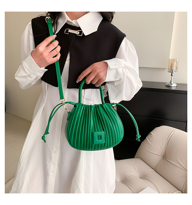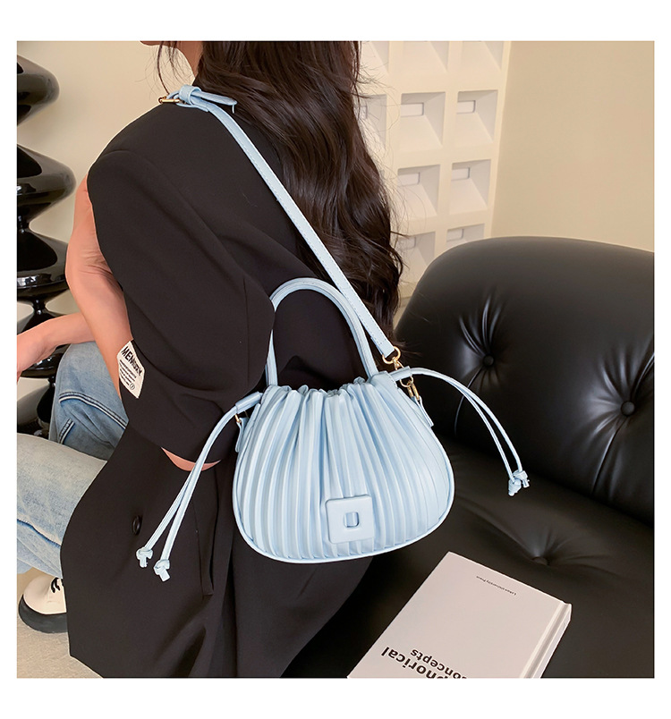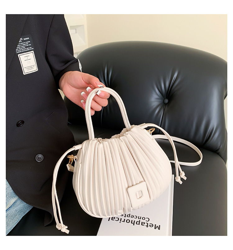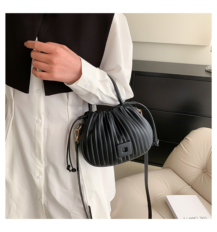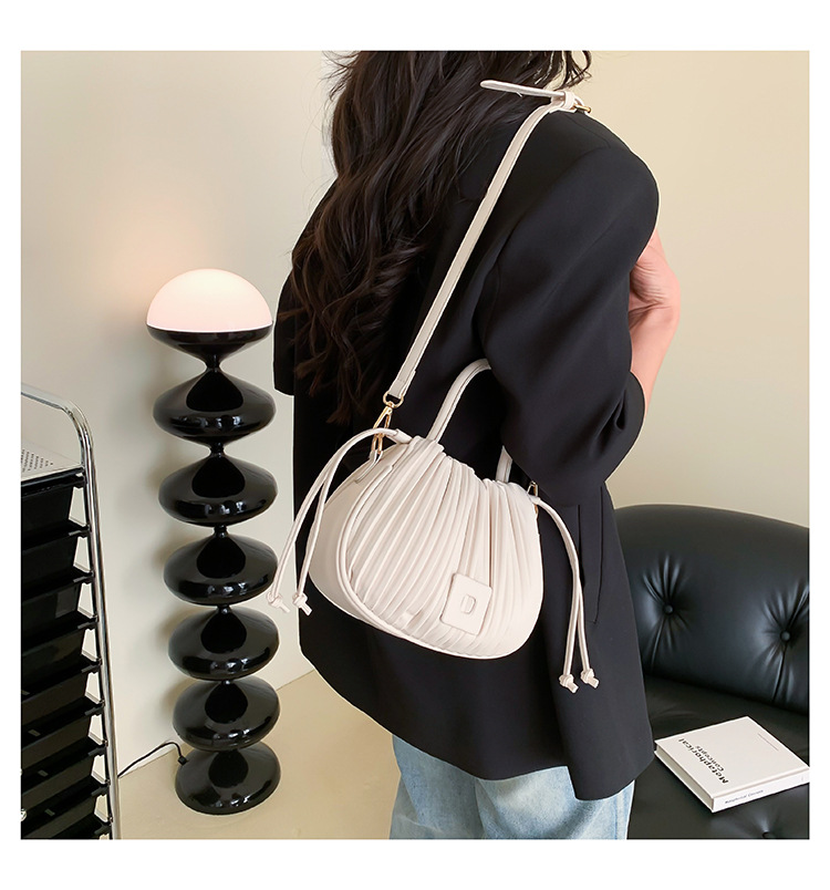플리츠 포켓 가방 여성용 가방 2024 새로운 크로스보더 드로스트링 버킷 휴대용 패션 트렌디한 질감 싱글 숄더 크로스바디