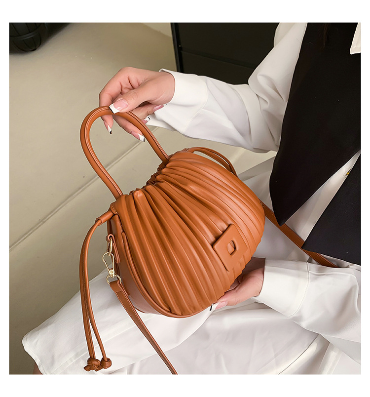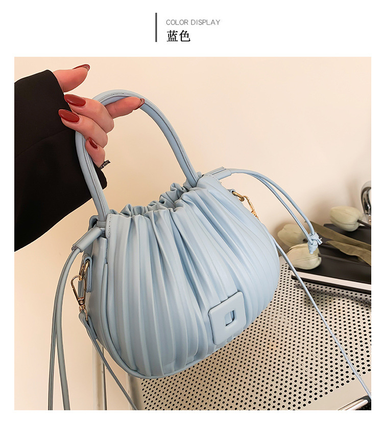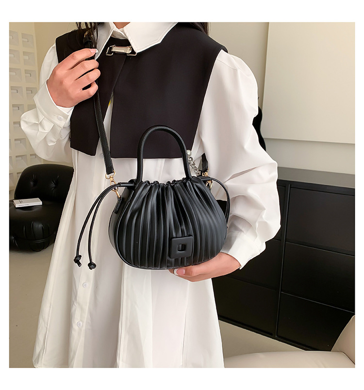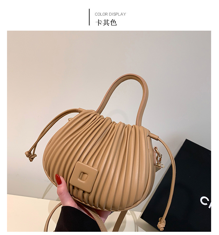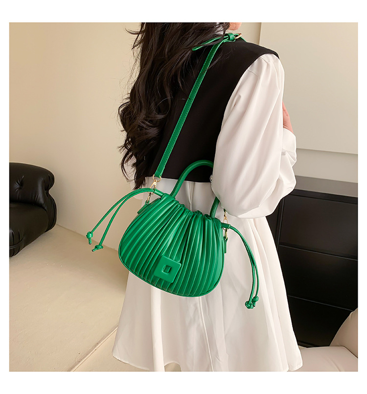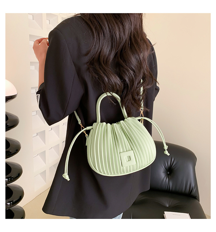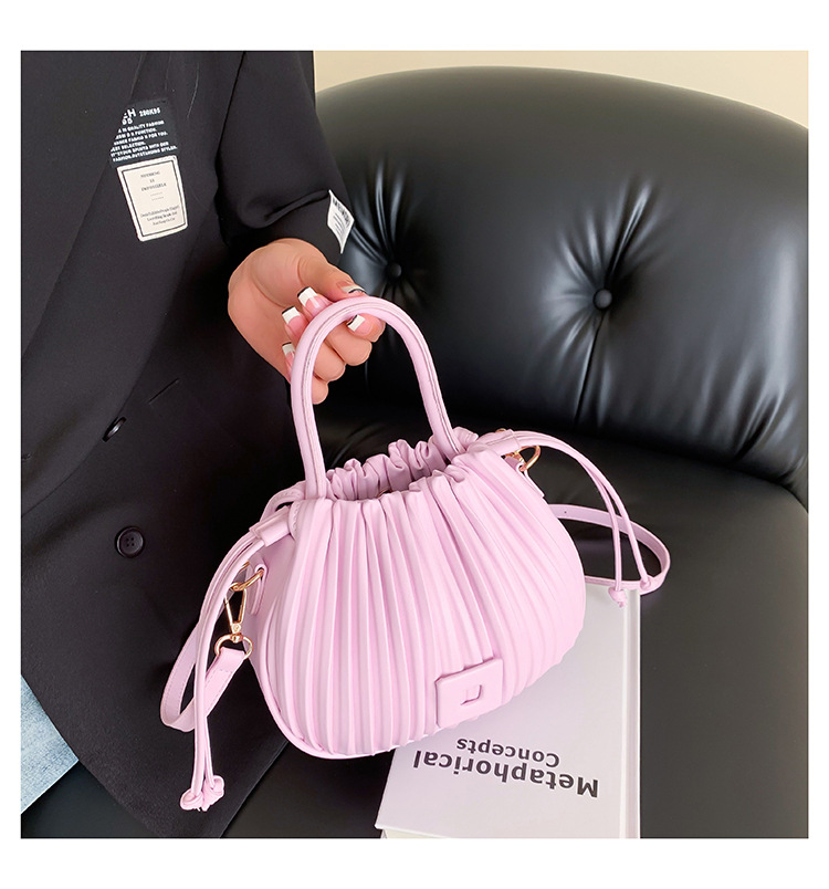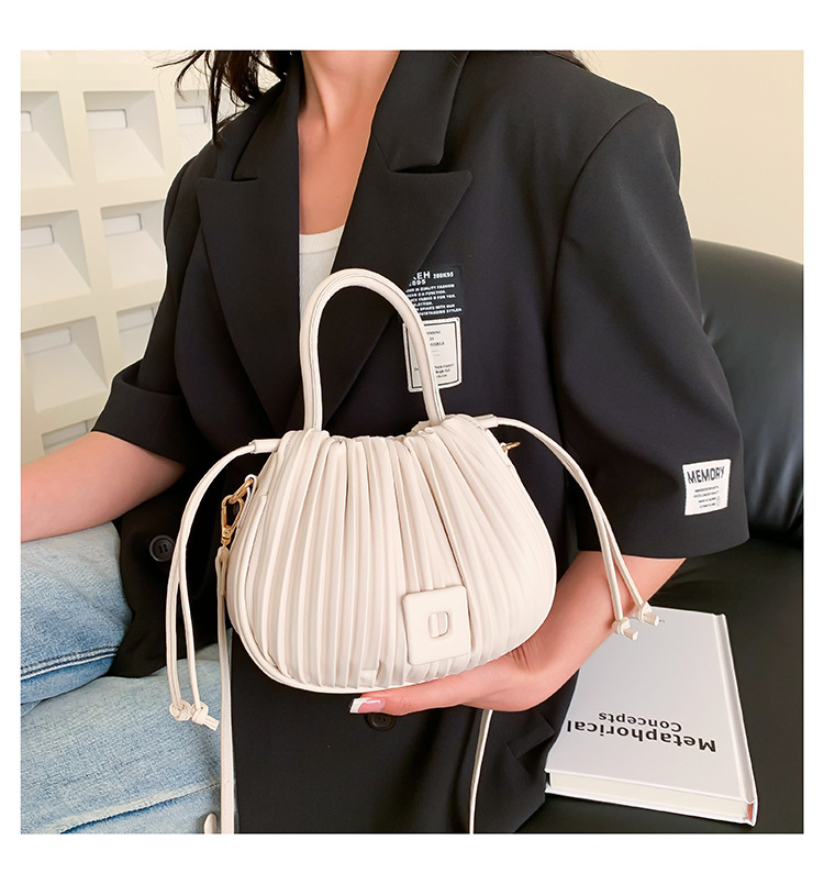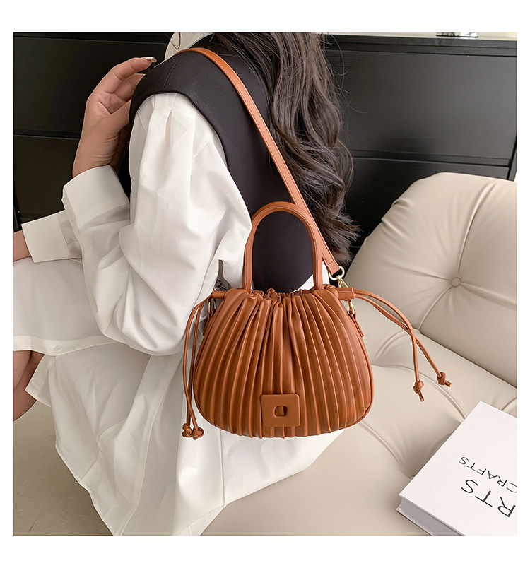 플리츠 포켓 가방 여성용 가방 2024 새로운 크로스보더 드로스트링 버킷 휴대용 패션 트렌디한 질감 싱글 숄더 크로스바디