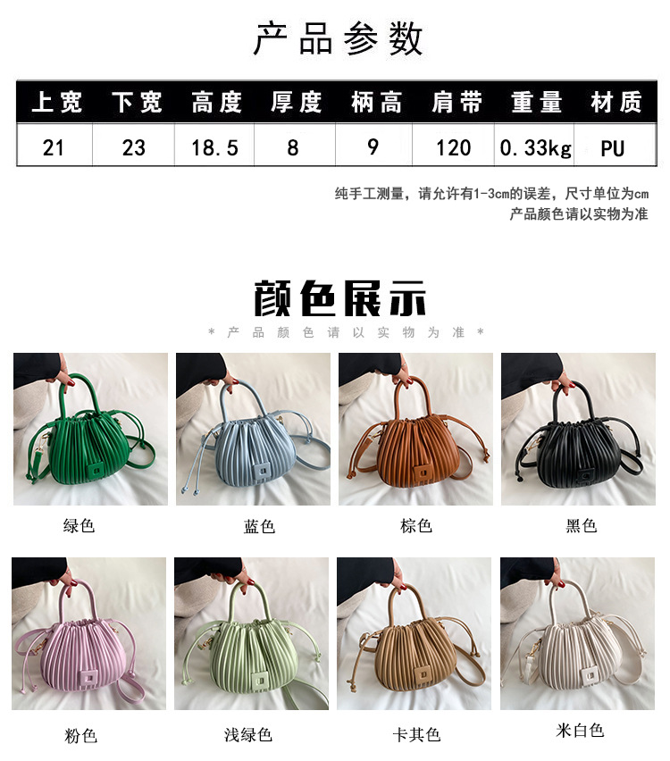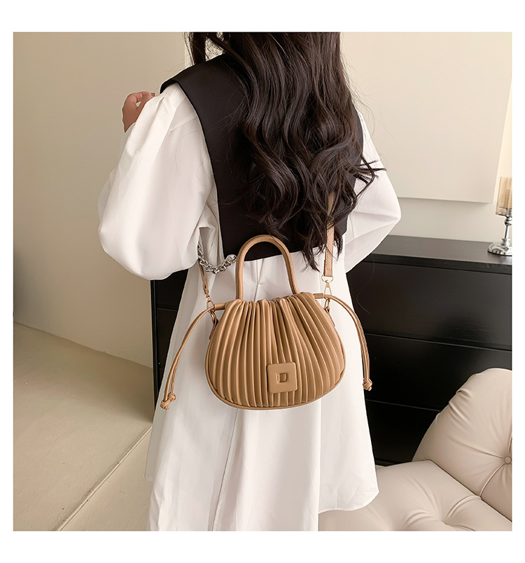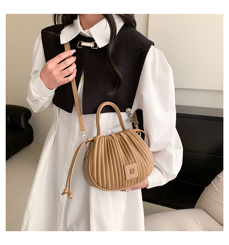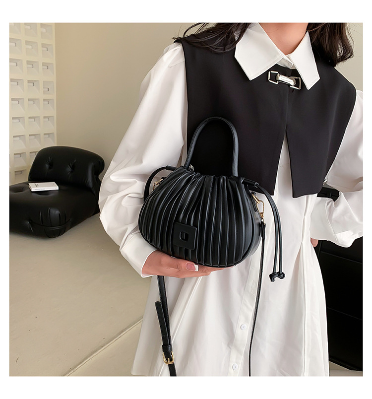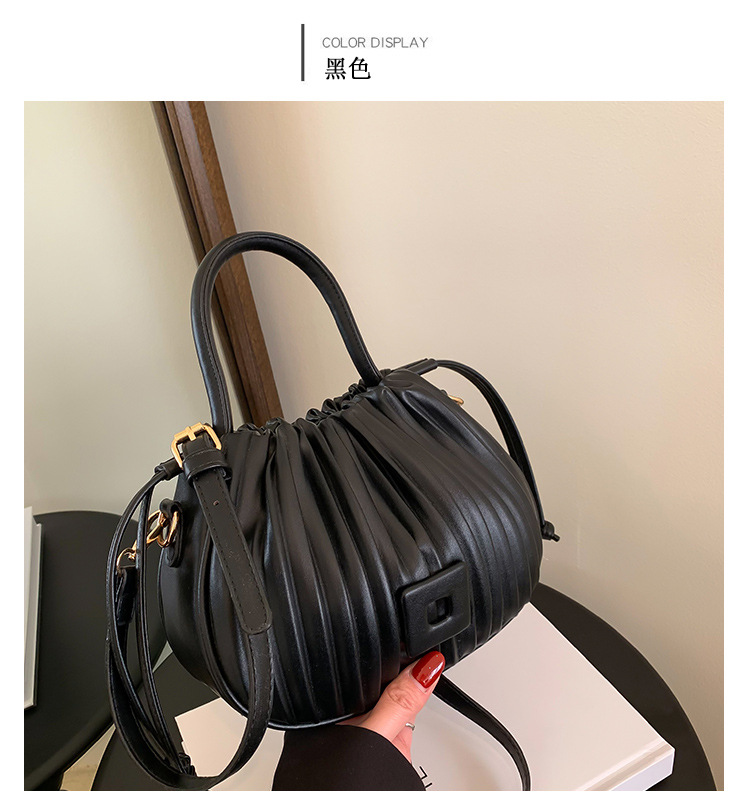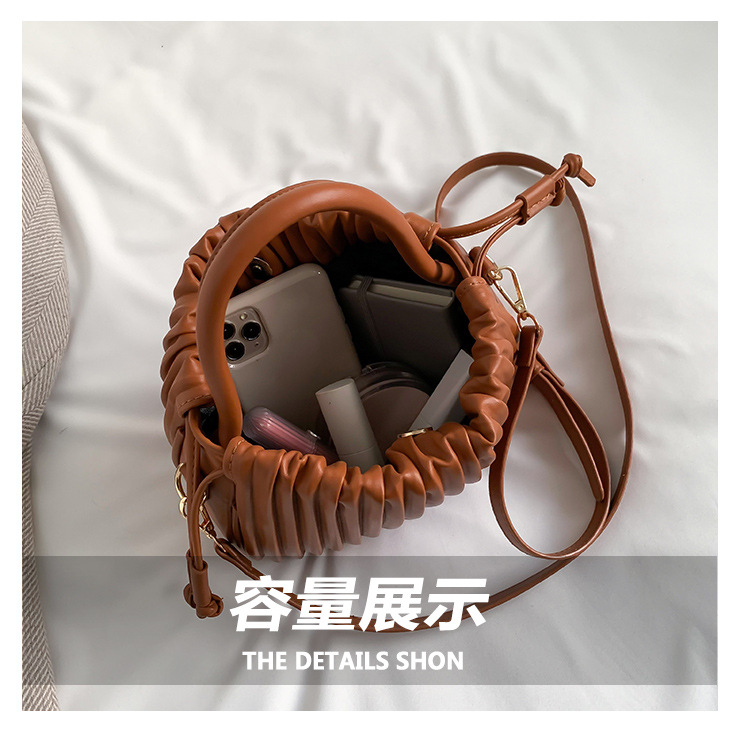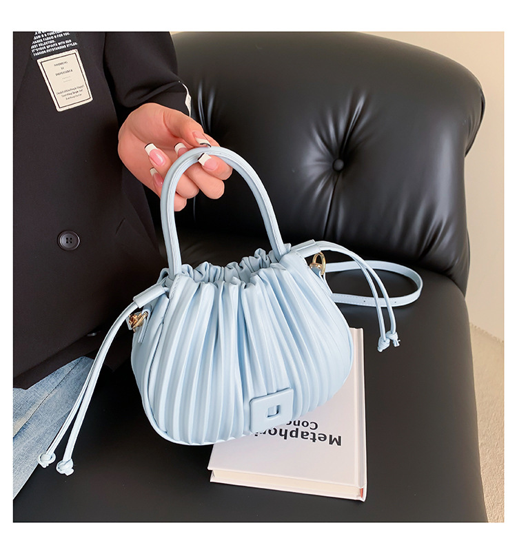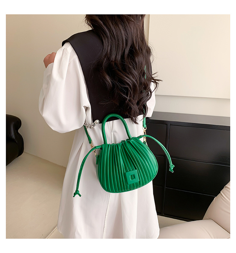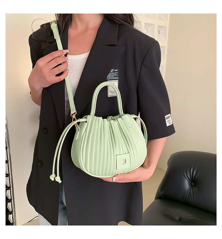 플리츠 포켓 가방 여성용 가방 2024 새로운 크로스보더 드로스트링 버킷 휴대용 패션 트렌디한 질감 싱글 숄더 크로스바디