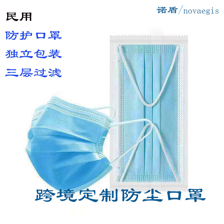독립적 인 포장 민간 일회용 평면 마스크 3 층 보호 멜트 블로우 필터면 블루 마스크