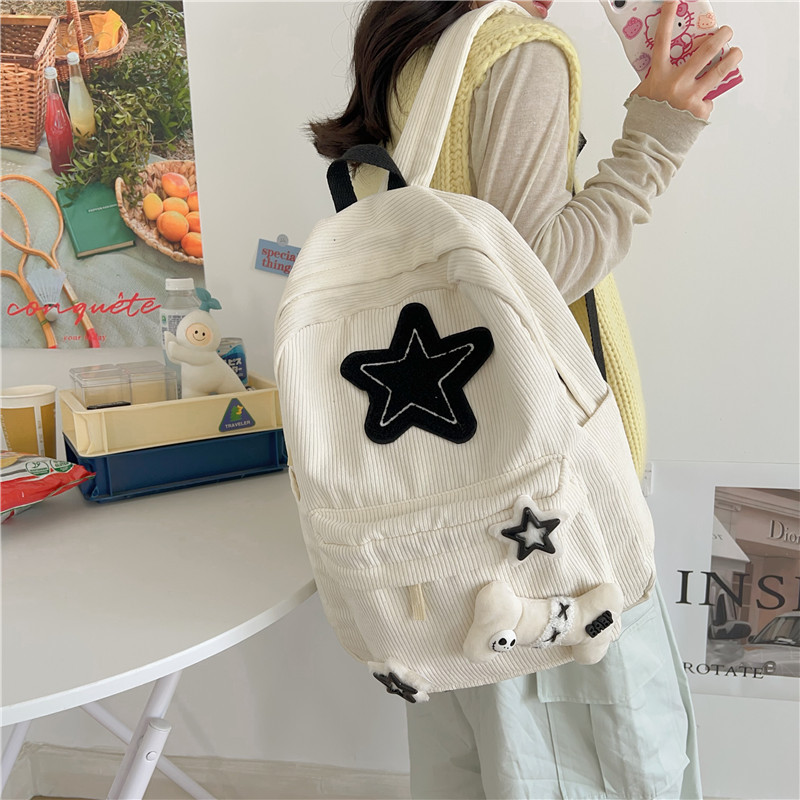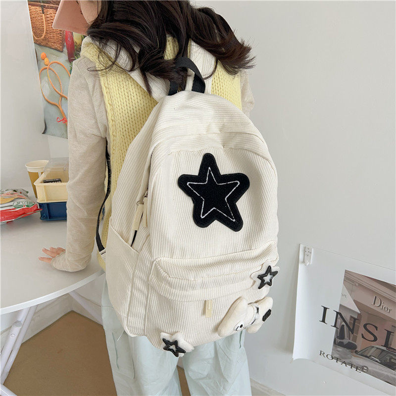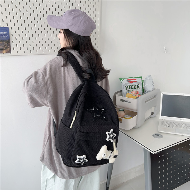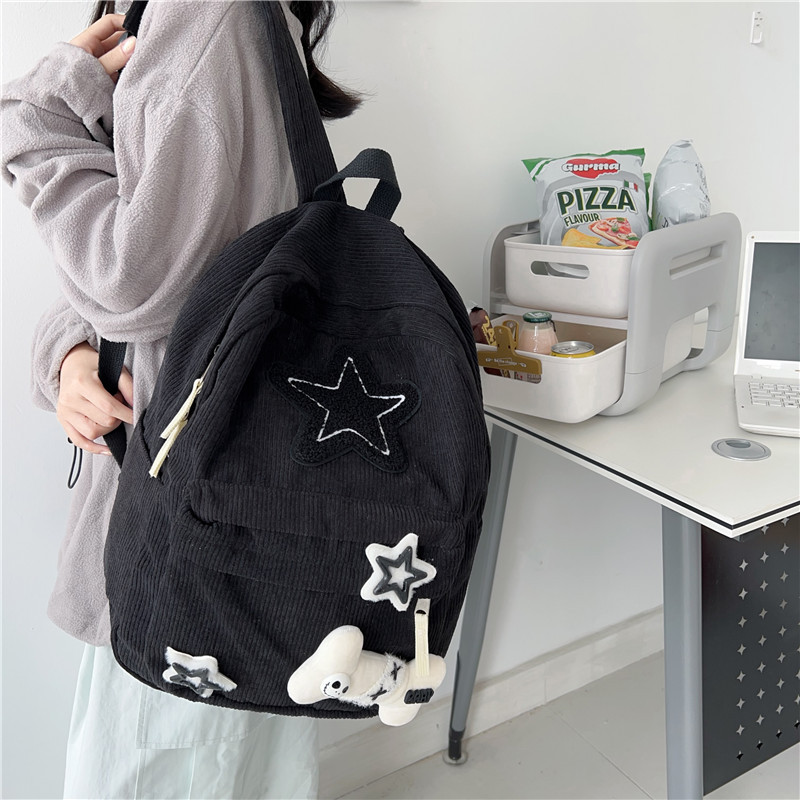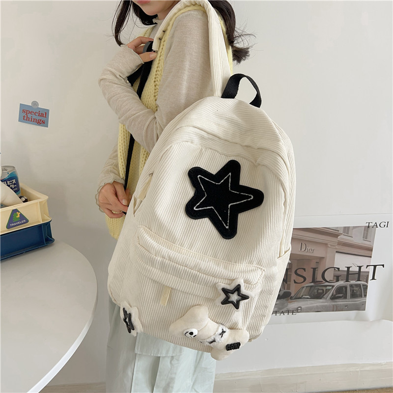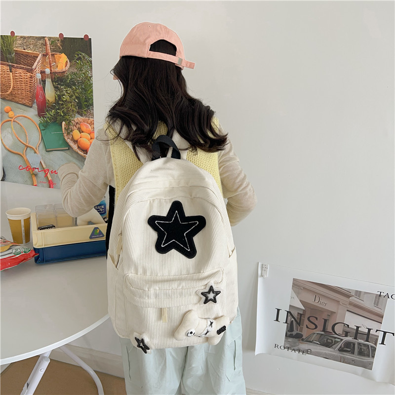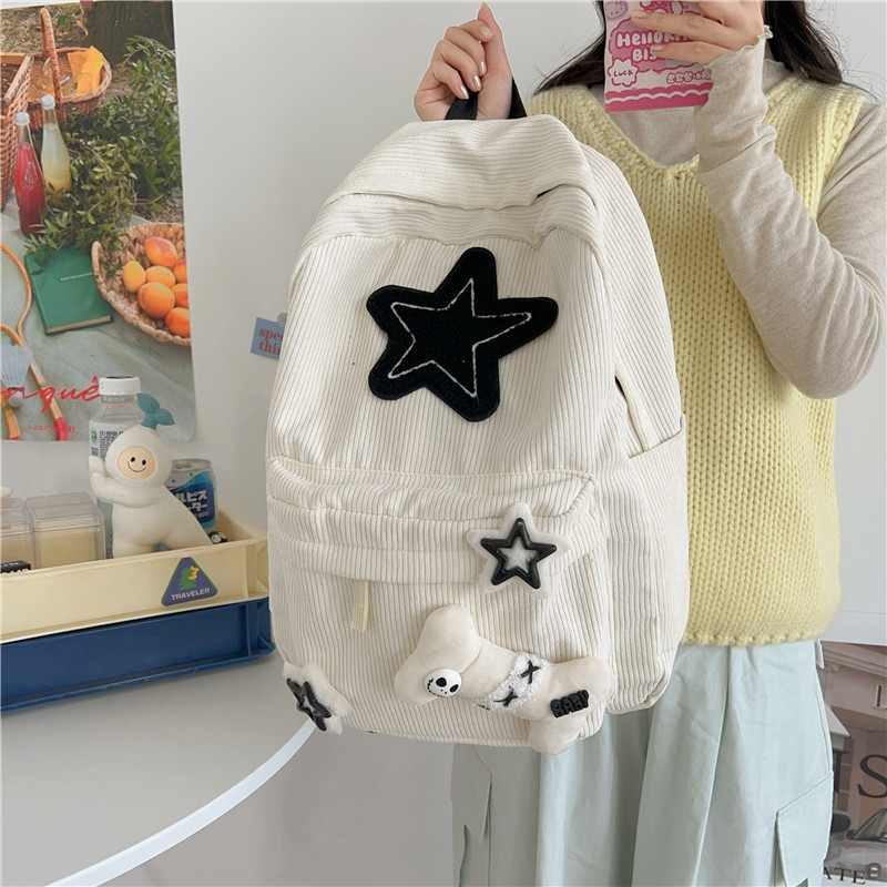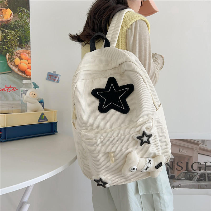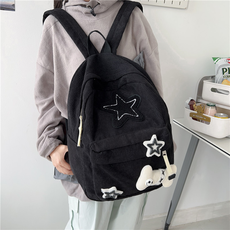 스타 오리지널 책가방 여성 일본인 코듀로이 y2g 대용량 대학 스타일 배낭 고등학생 배낭