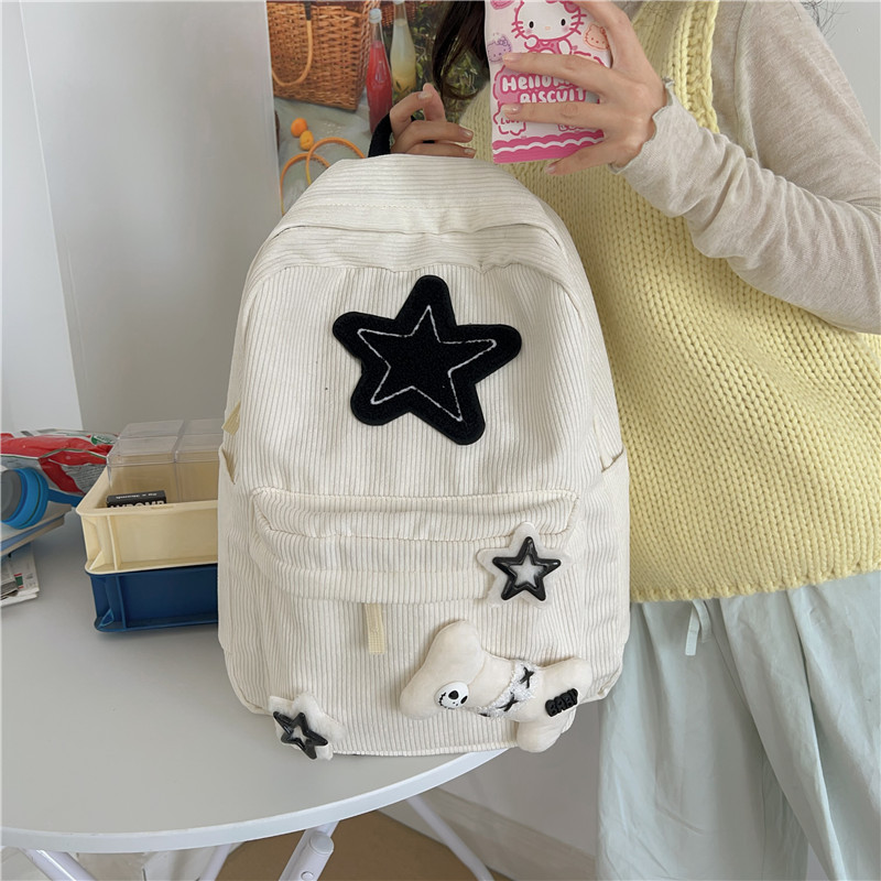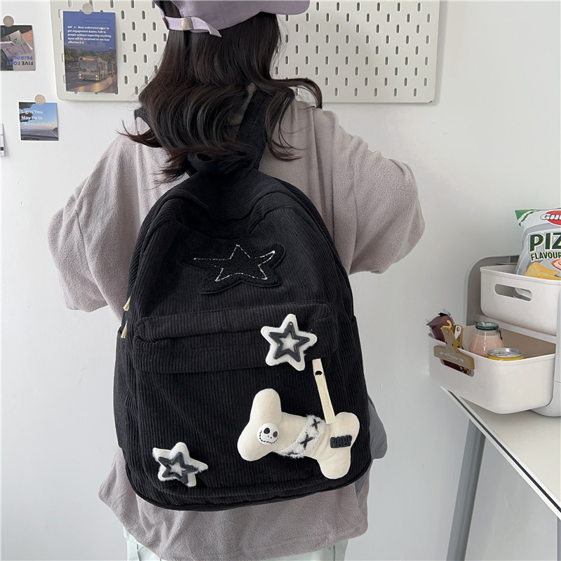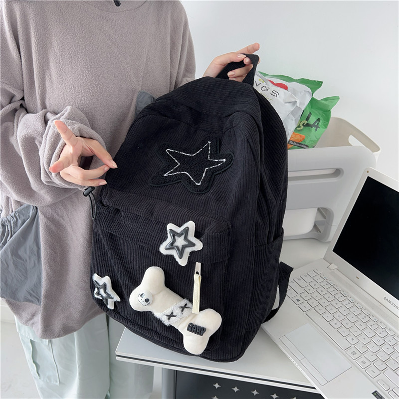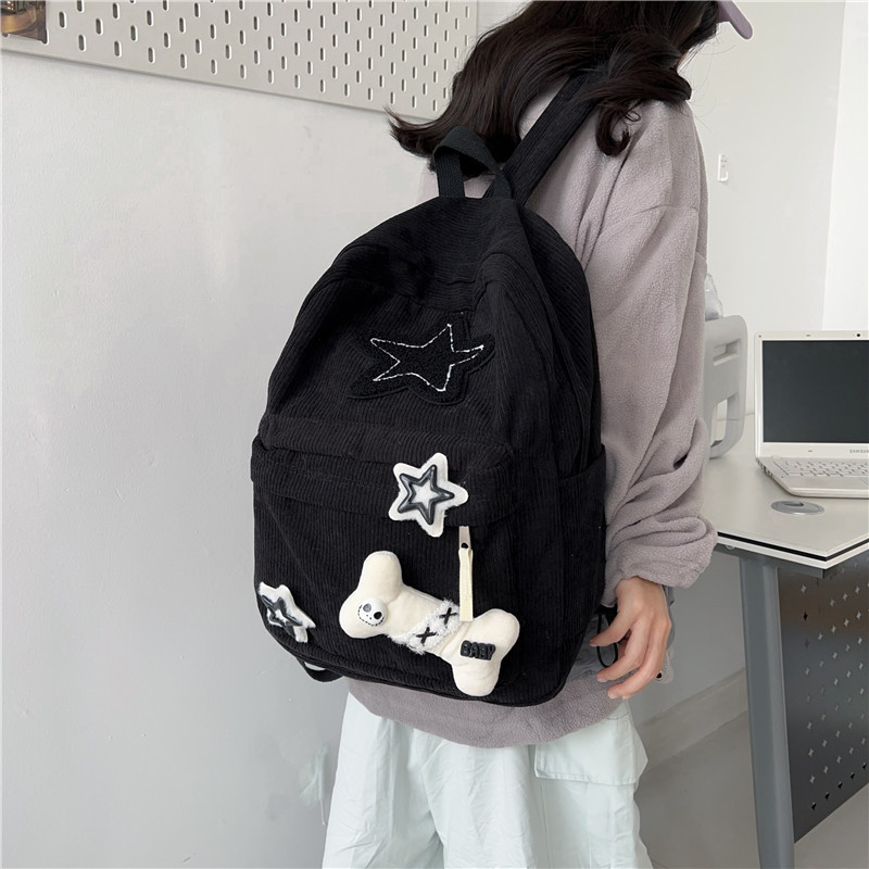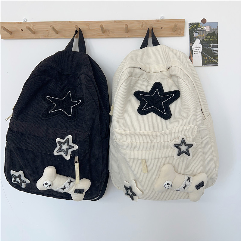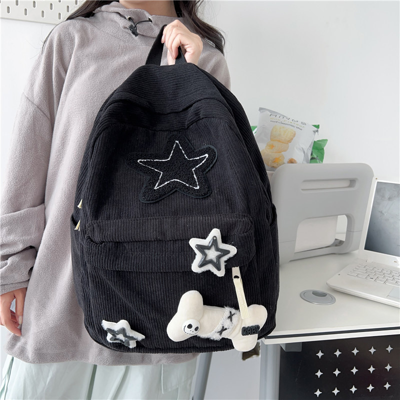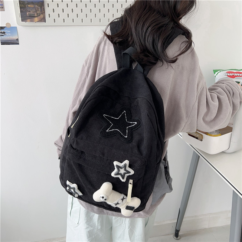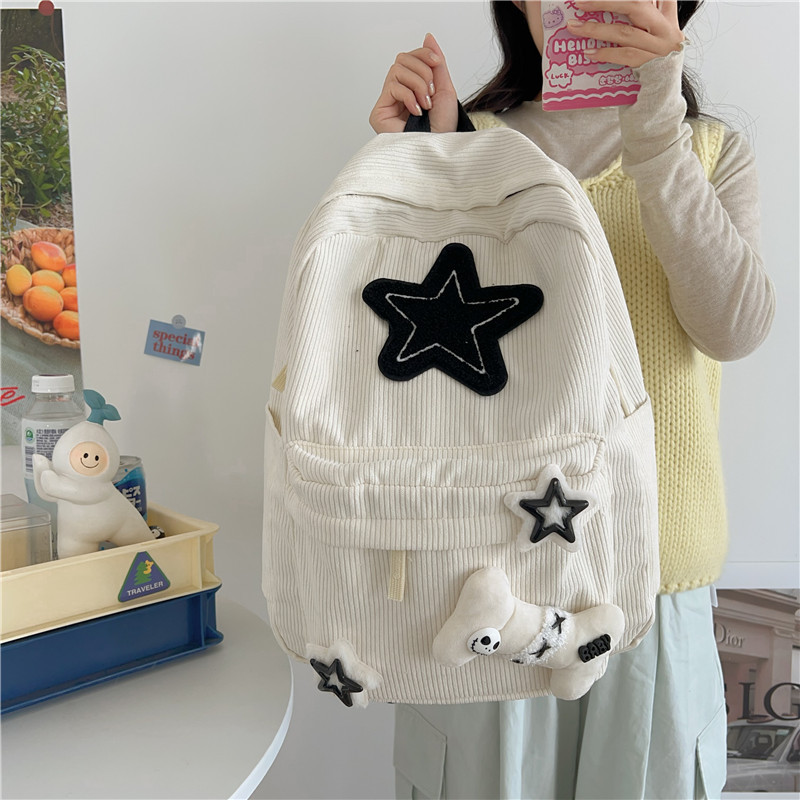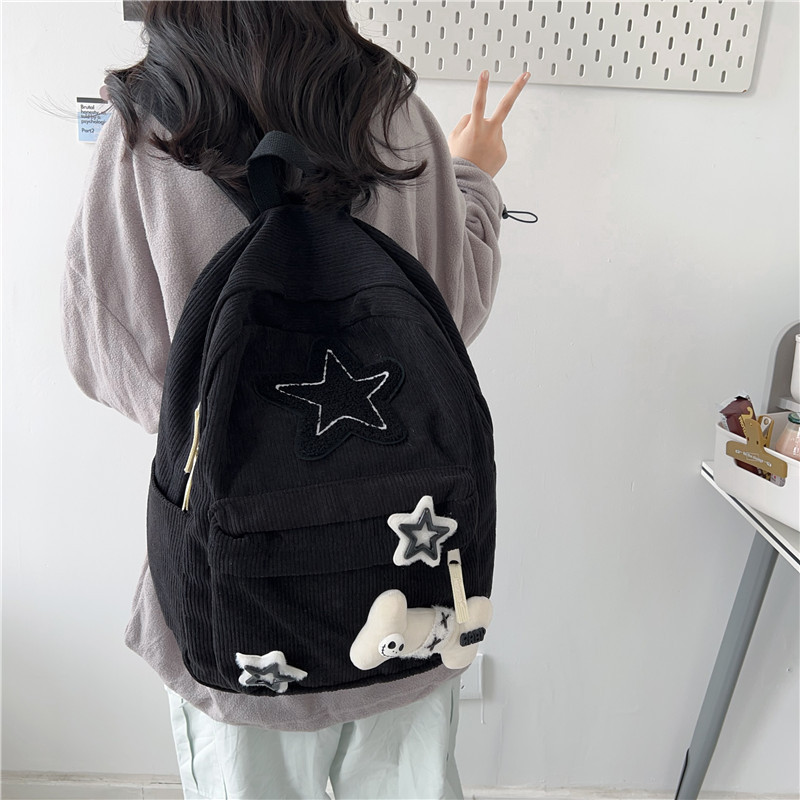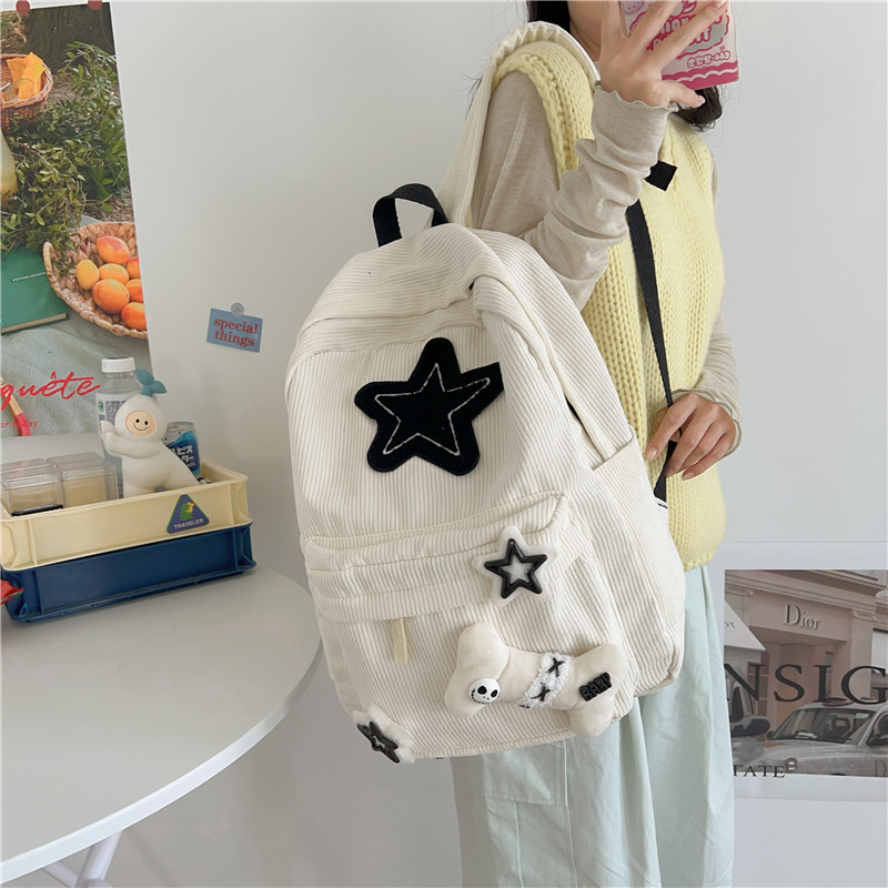 스타 오리지널 책가방 여성 일본인 코듀로이 y2g 대용량 대학 스타일 배낭 고등학생 배낭