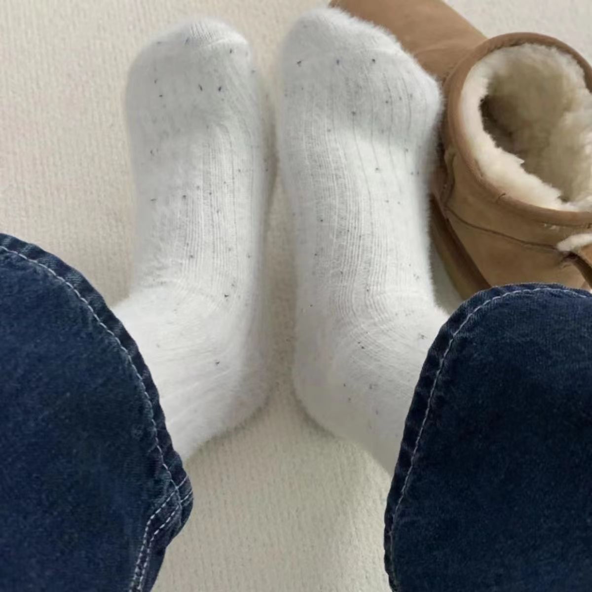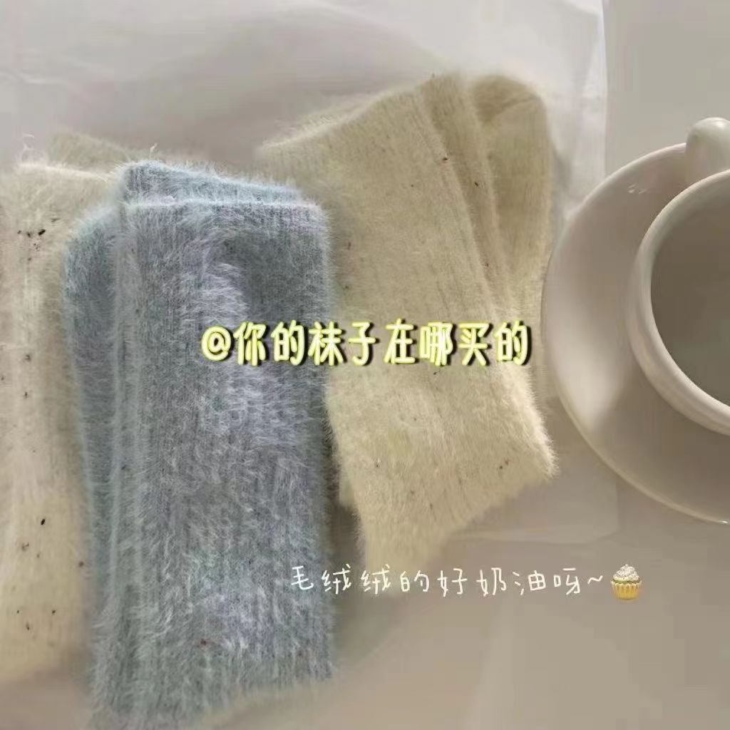 여성용 밍크 벨벳 양말 겨울 따뜻한 플러스 벨벳 두꺼운 중간 튜브 솔리드 컬러 양말 모피 원사 중간 튜브 두꺼운 양말스토어 가기