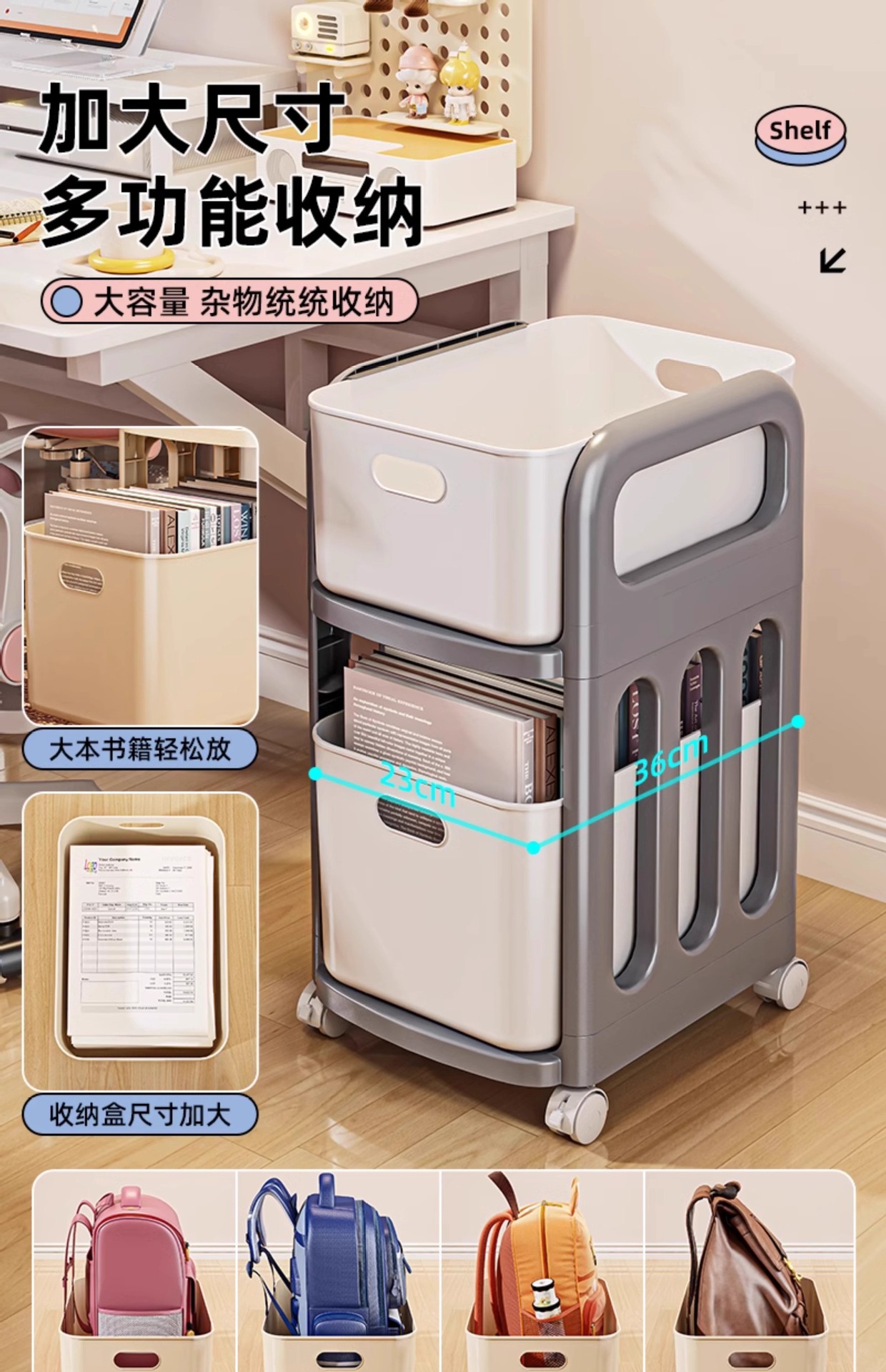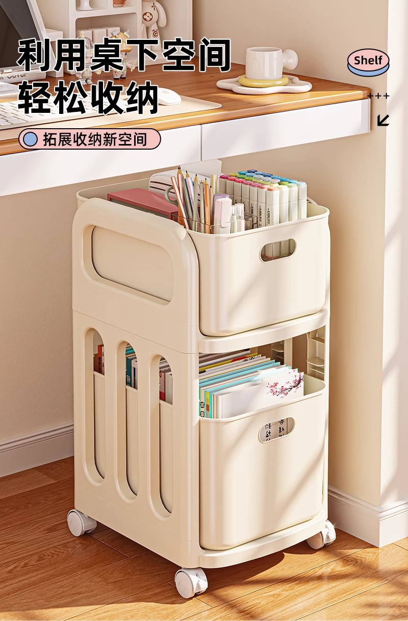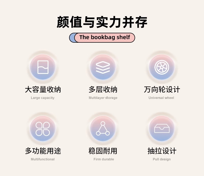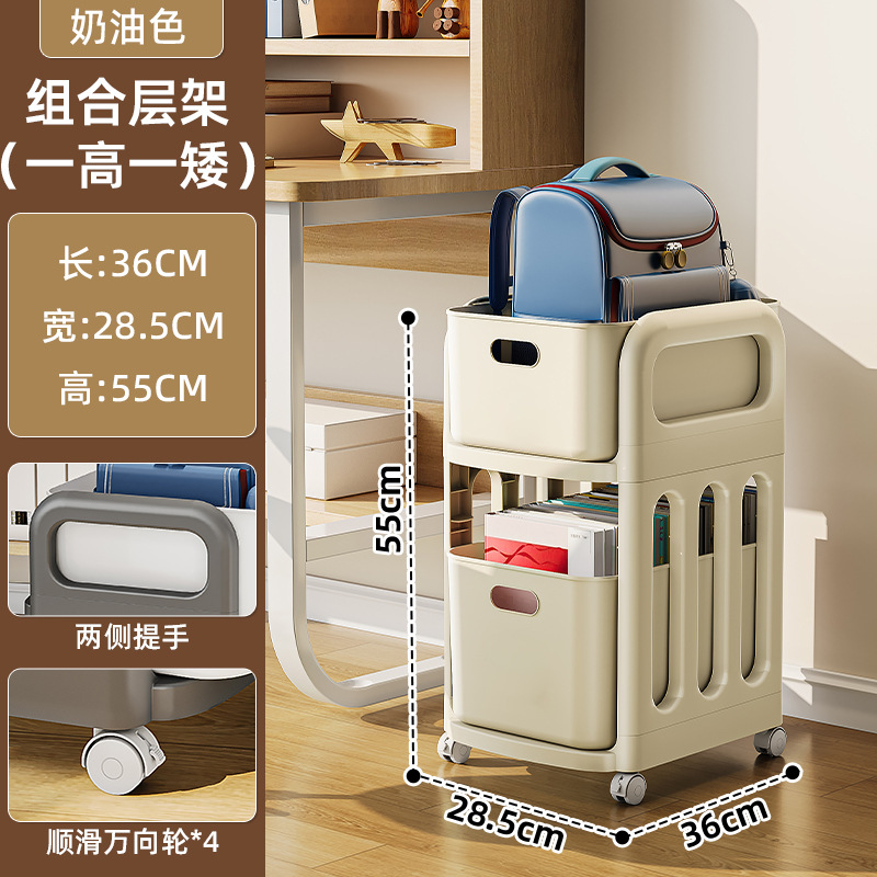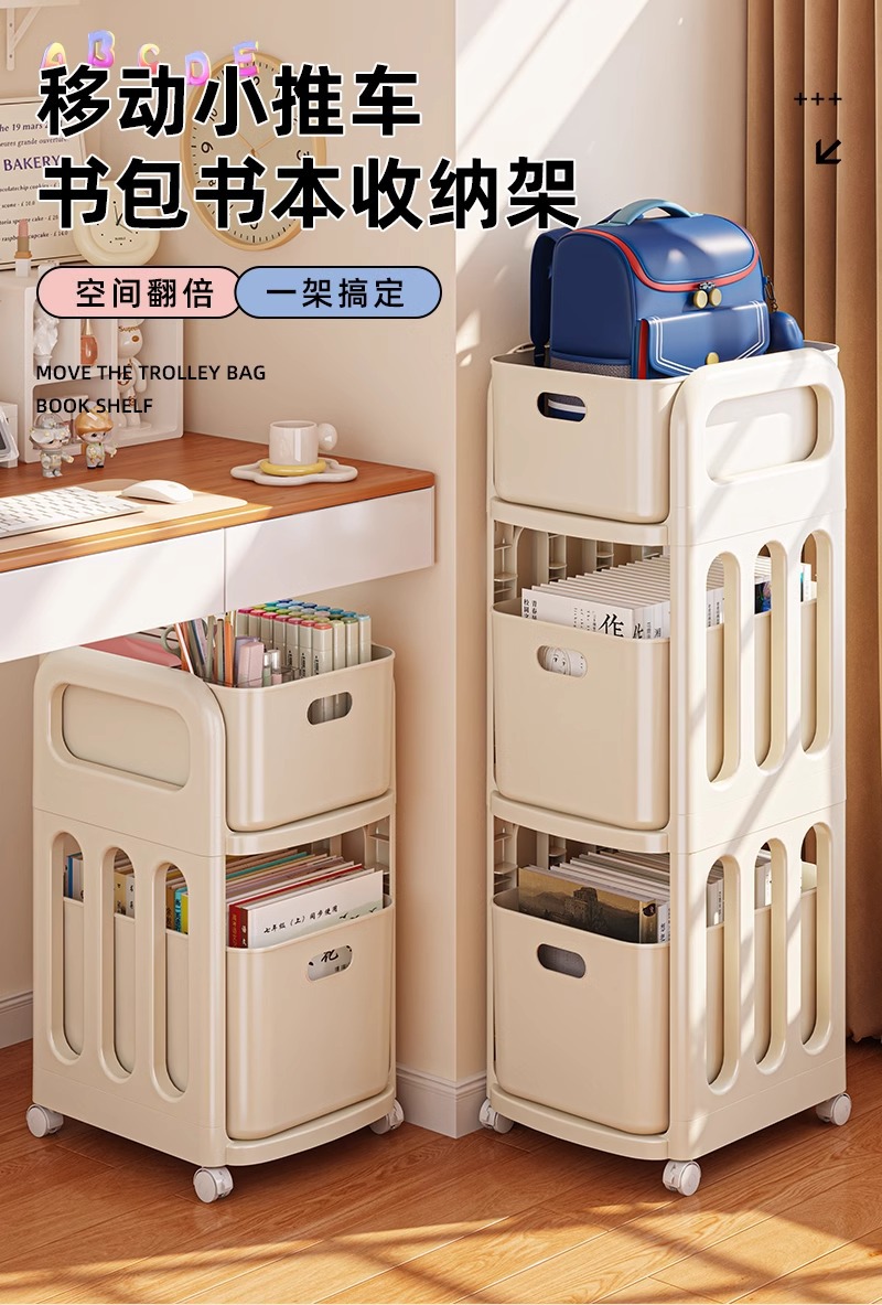 书包架 多层 分类 带格 轻奢 简约 大容量 分层 置物架 小推车 可移动 整理 收纳 杂物 文件 文具 零食 玩具 家用 家居 日用 卧室 学生 寝室 宿舍 客厅 书房