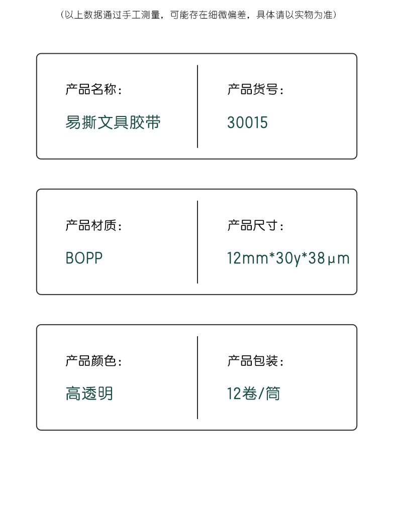 • 30015 찢기 쉬운 문구 테이프 12mm * 30y * 38um (높은 투과성)(12 롤/튜브)