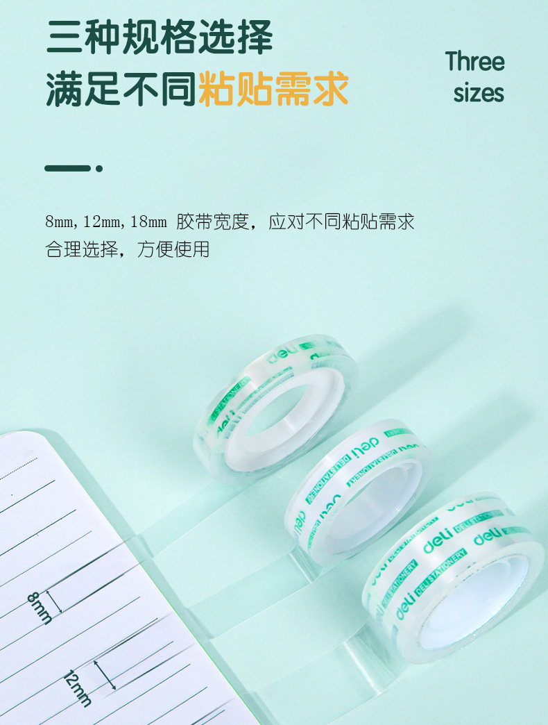 델리 문구 테이프 투명 테이프 작은 학생 좁은 테이프 투명 테이프 30064 테이프 3011