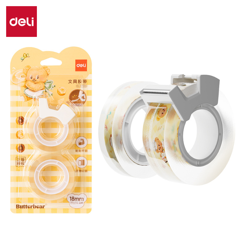 • 델리 HY553 버터베어 문구테이프 18mm*20y*38um(투명)(2롤/카드)