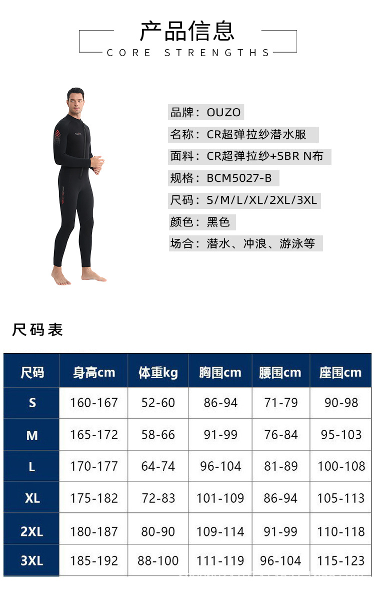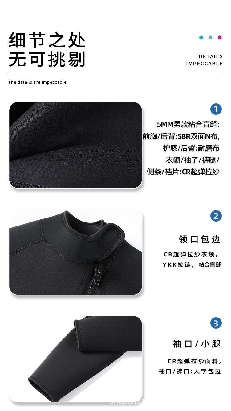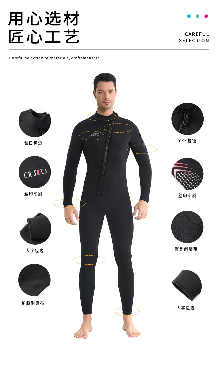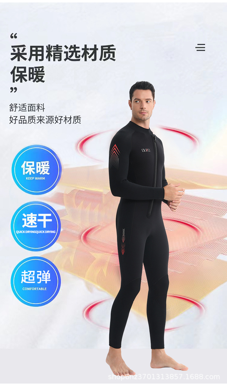 新款5MM男款长袖长裤冬泳泳衣 加厚防寒保暖连体浮潜防晒潜水服