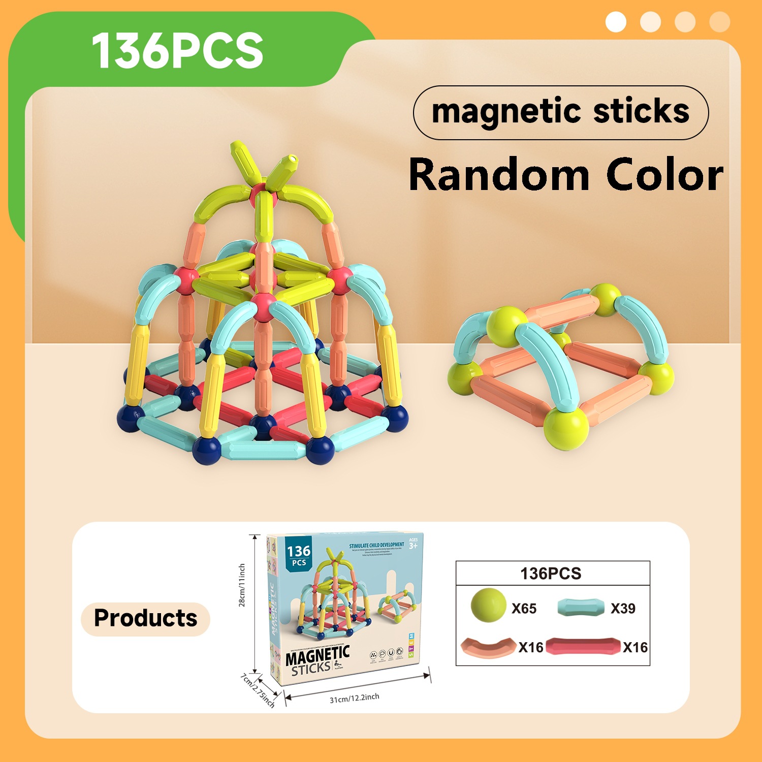 • 자석스틱 136개 세트[칼라박스형]
