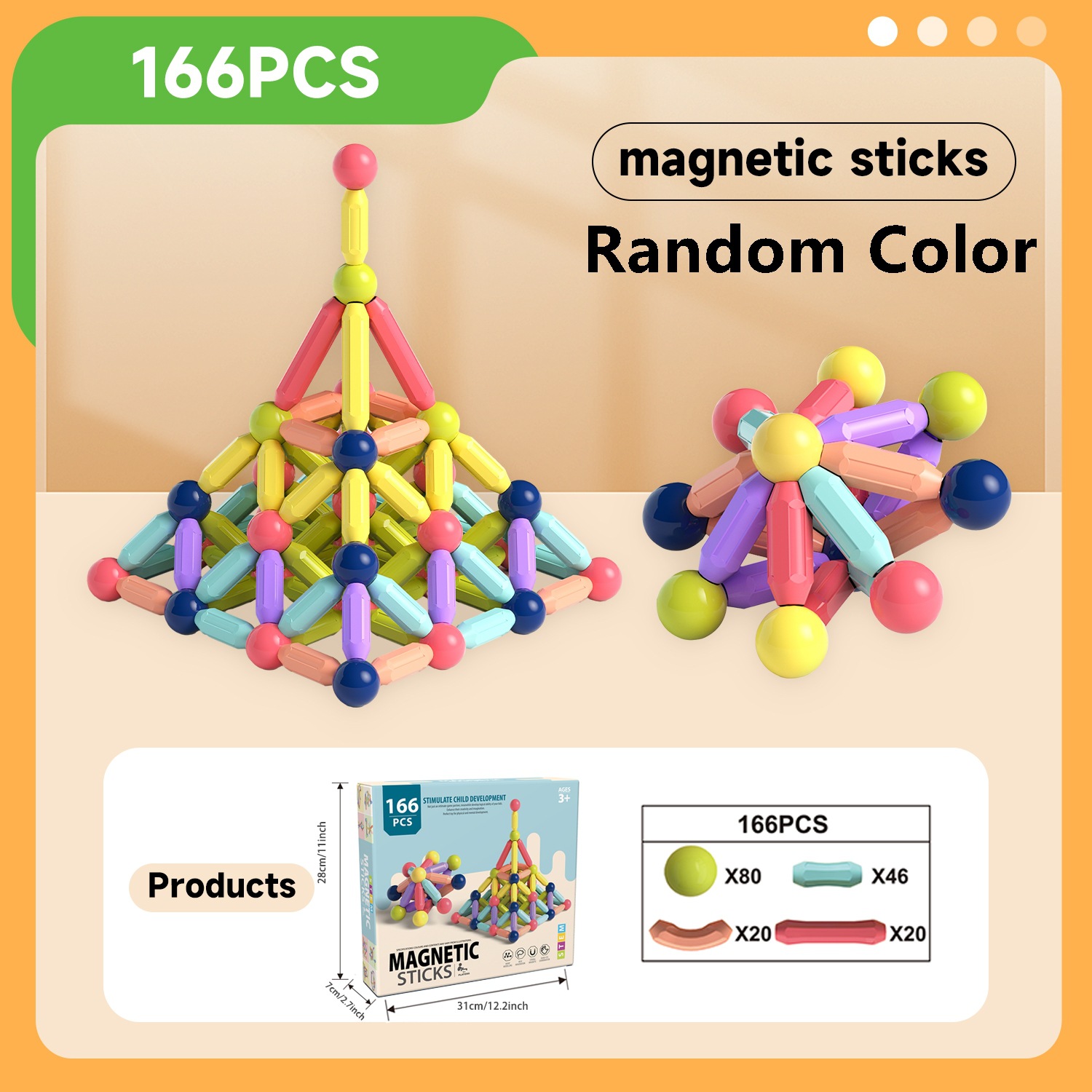 • 자석스틱 166개 세트[칼라박스형]
