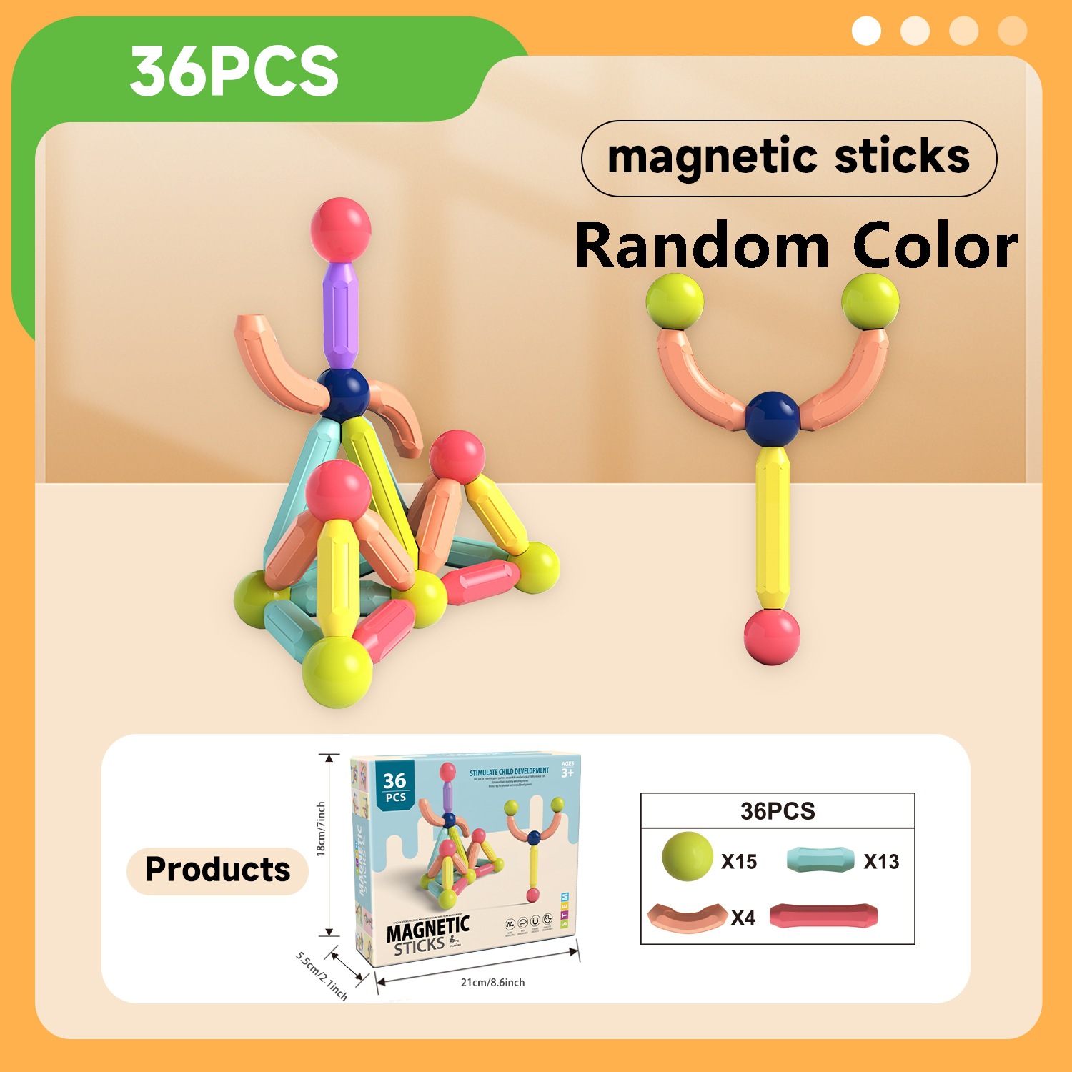 • 자석스틱 36개 세트[칼라박스형]