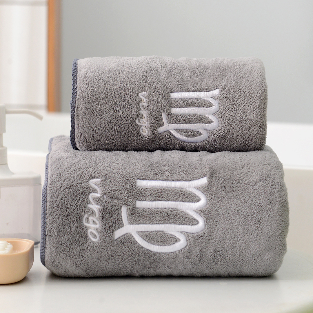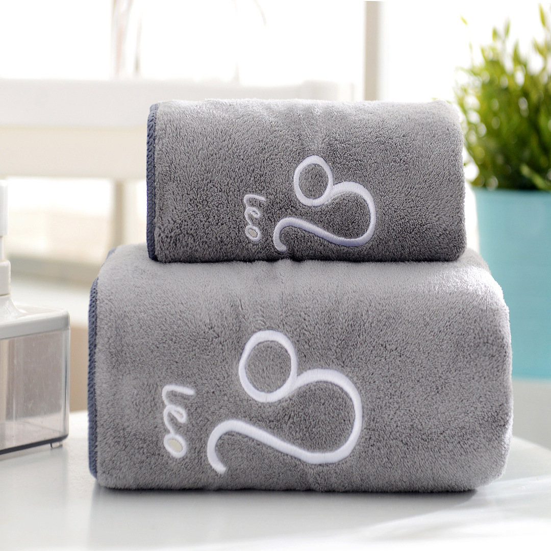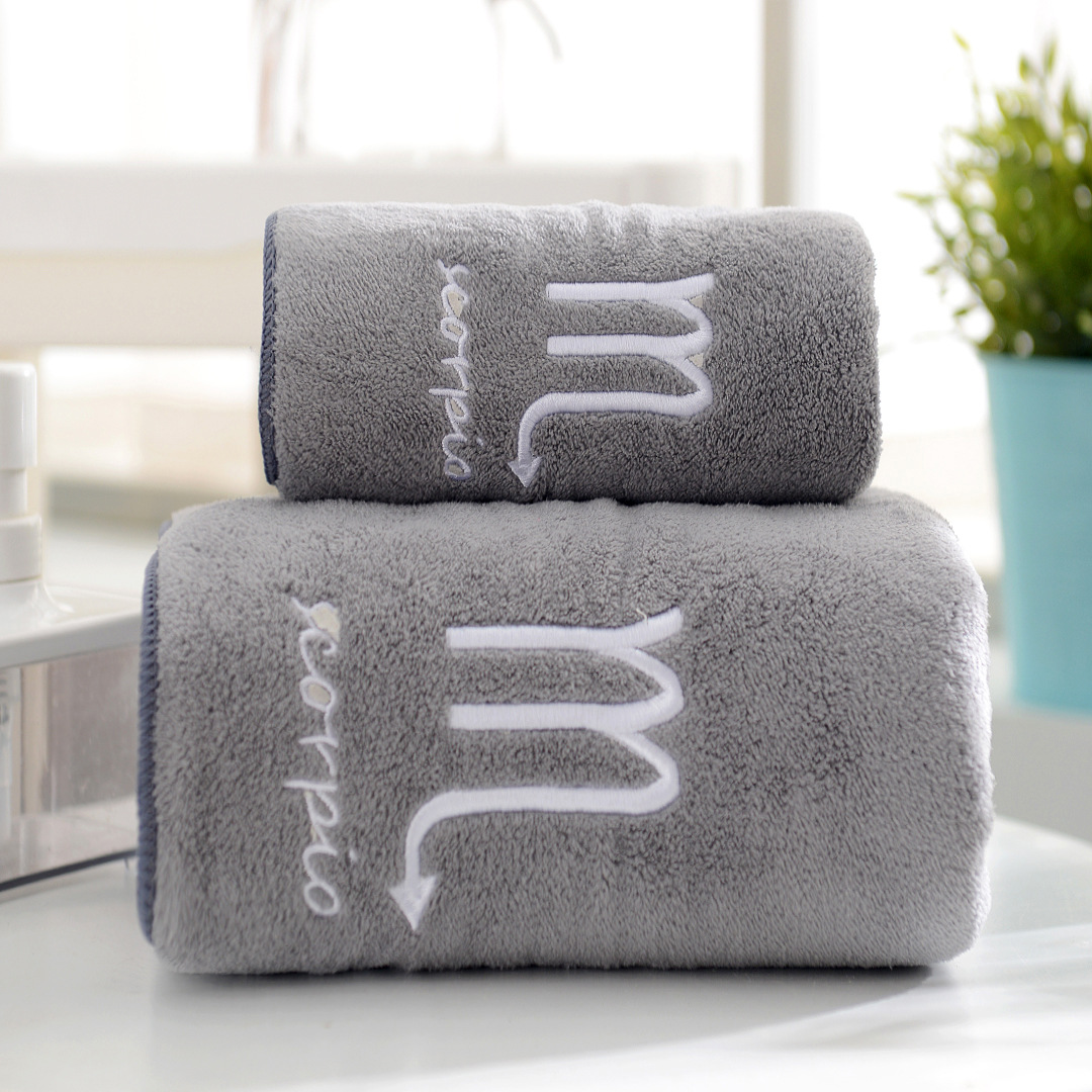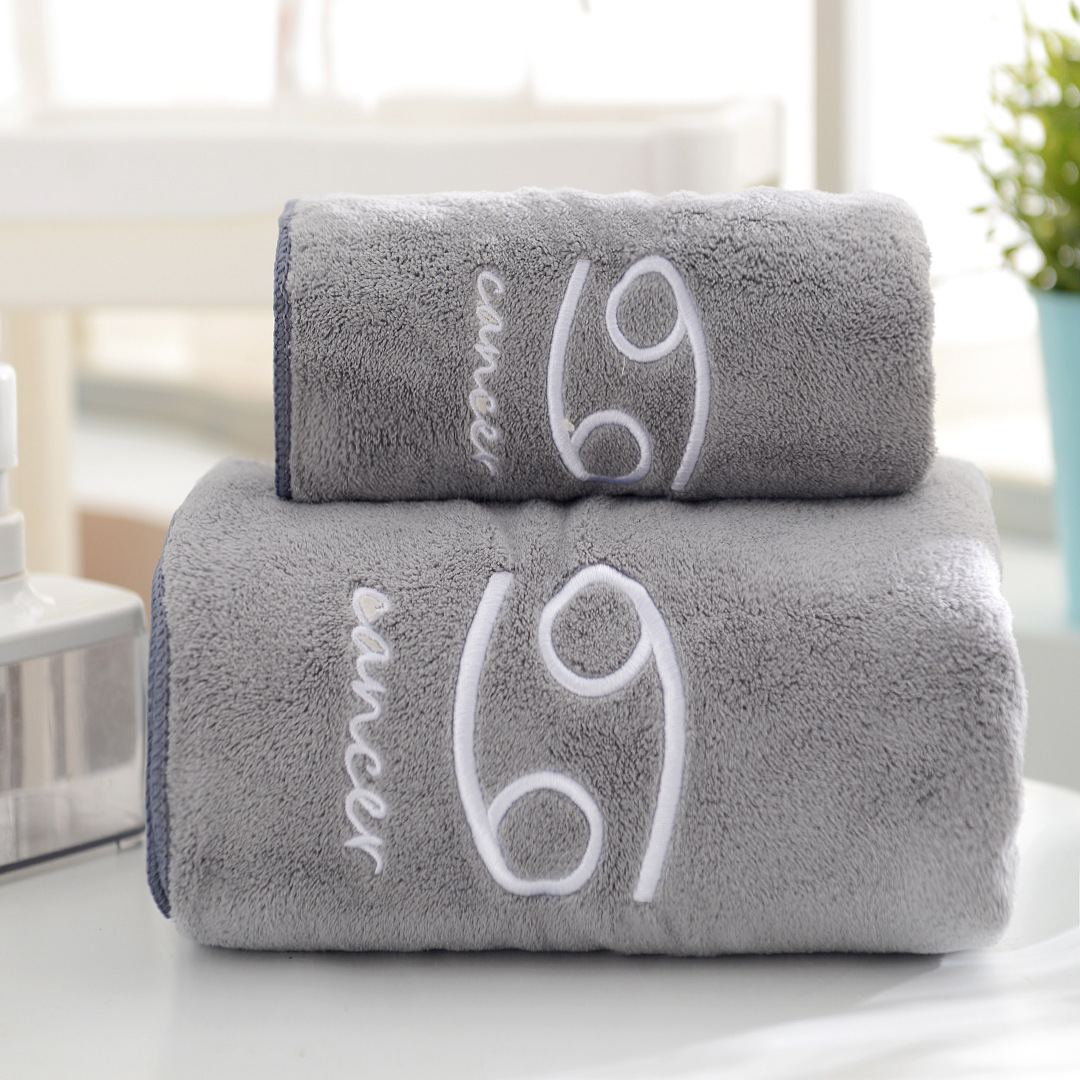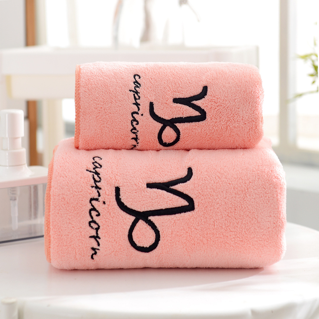 도매 산호 양털 12 별자리 수건 목욕 타월 세트 부드러운 커플 수건 흡수성 두꺼운 아이와 어머니 수건