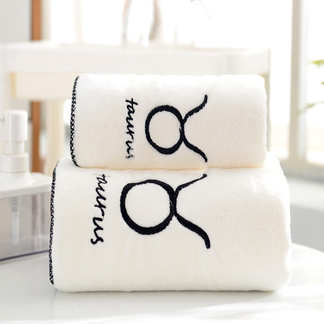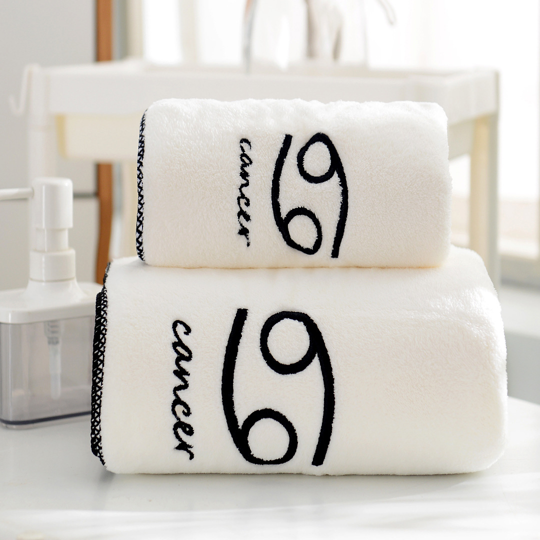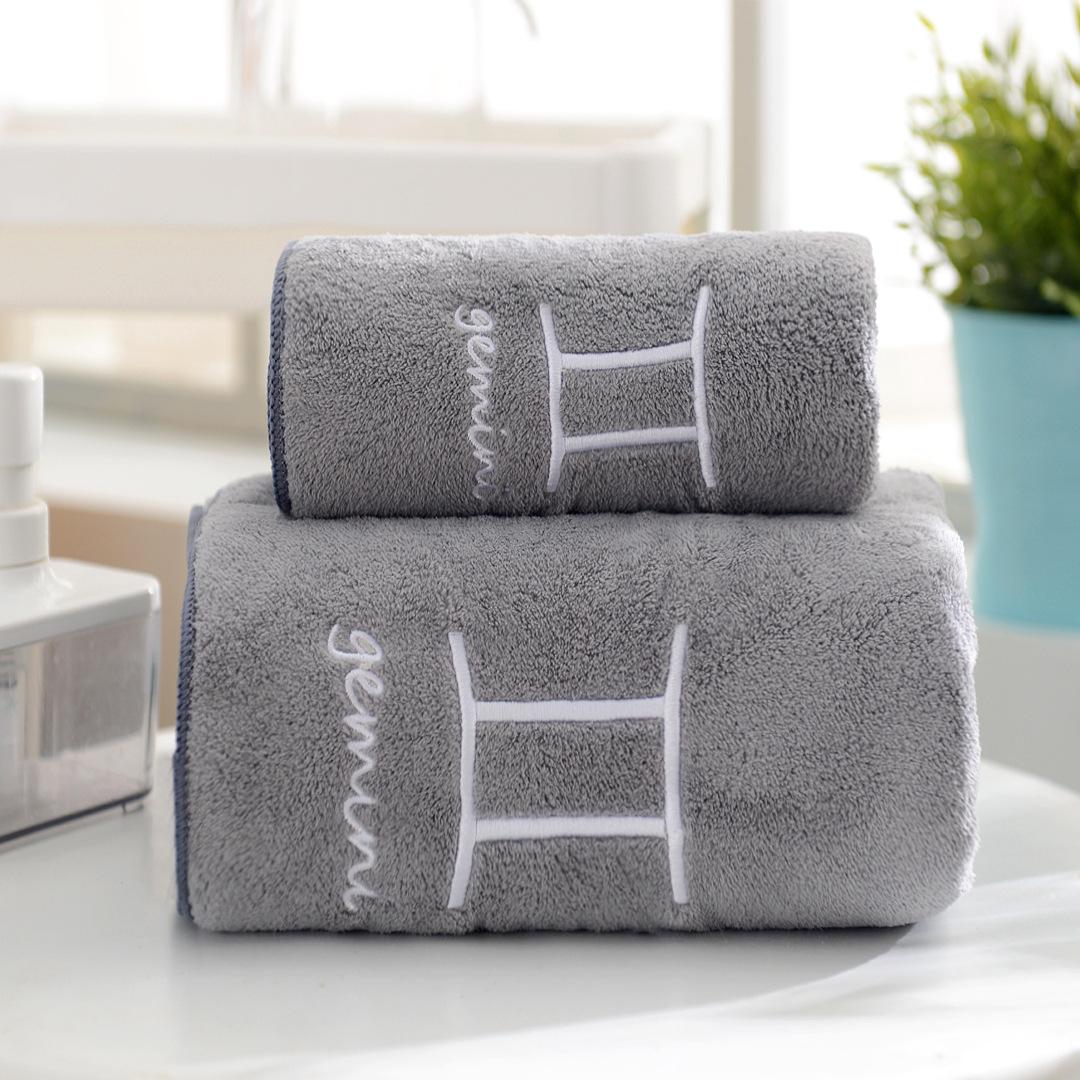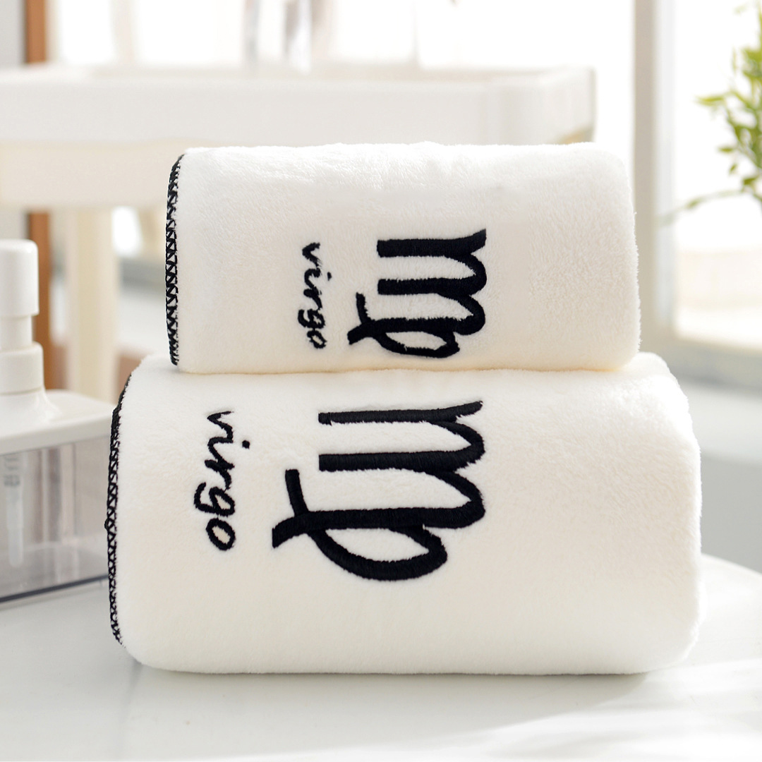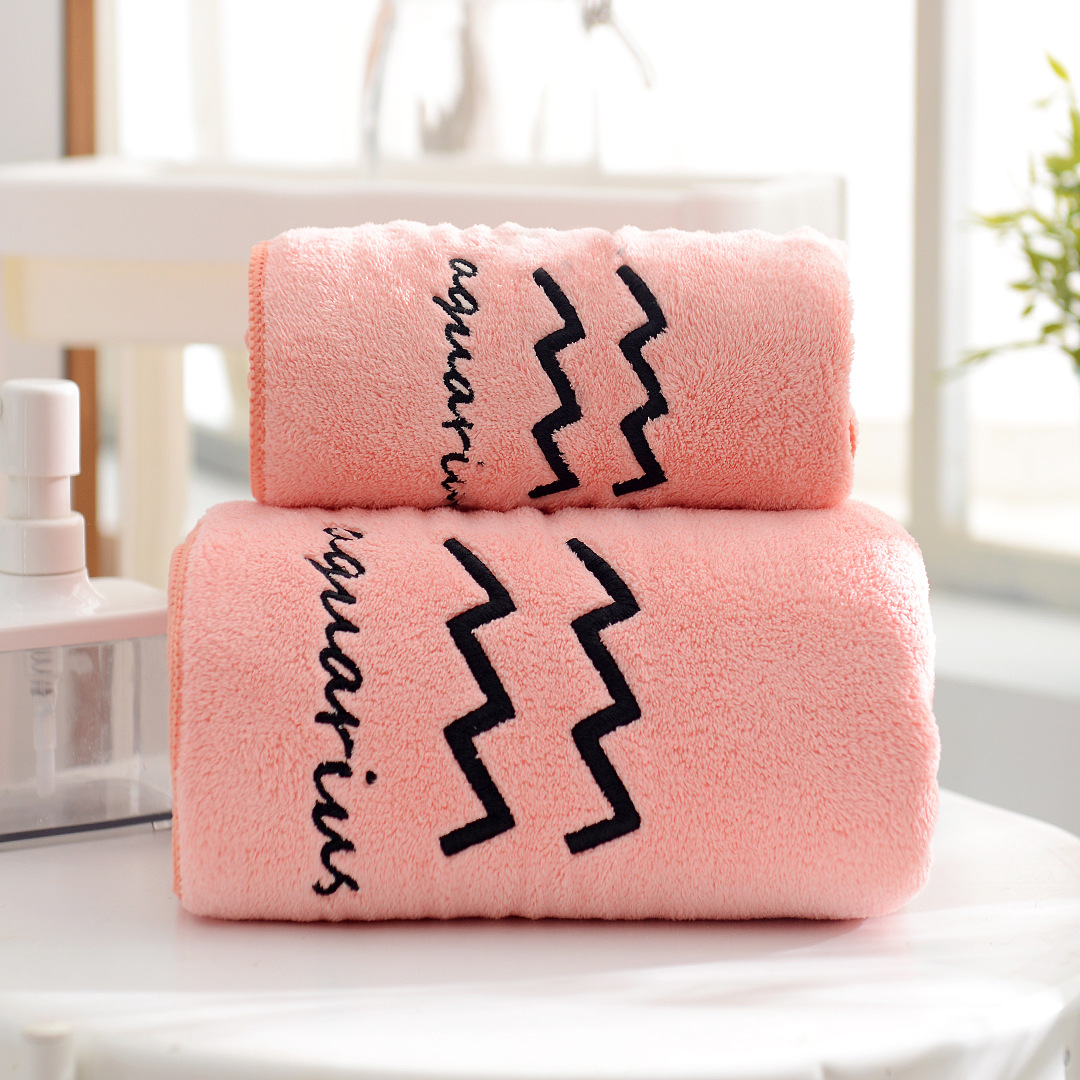 도매 산호 양털 12 별자리 수건 목욕 타월 세트 부드러운 커플 수건 흡수성 두꺼운 아이와 어머니 수건
