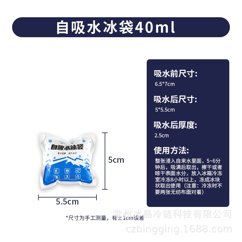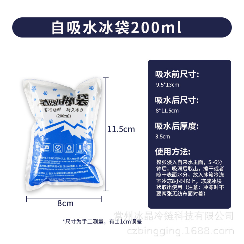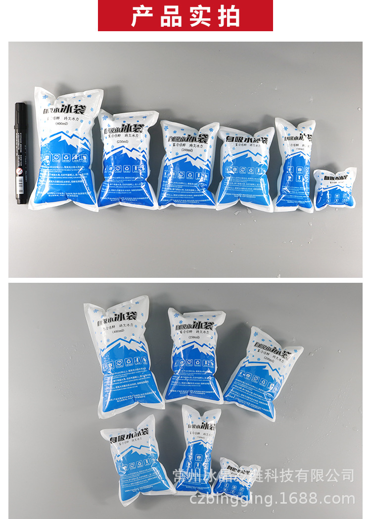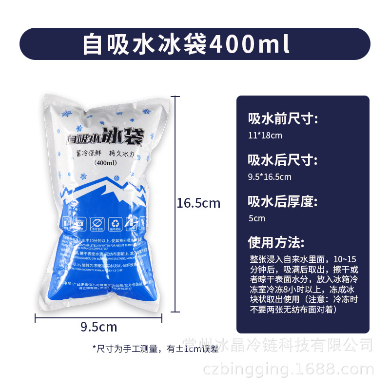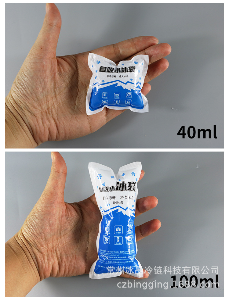 물에 담근 빠른 냉동 특수 신선도 유지 및 냉장 반복 사용을 위한 자체 흡수 얼음주머니, 소형 상업용 테이크아웃 배달스토어 가기