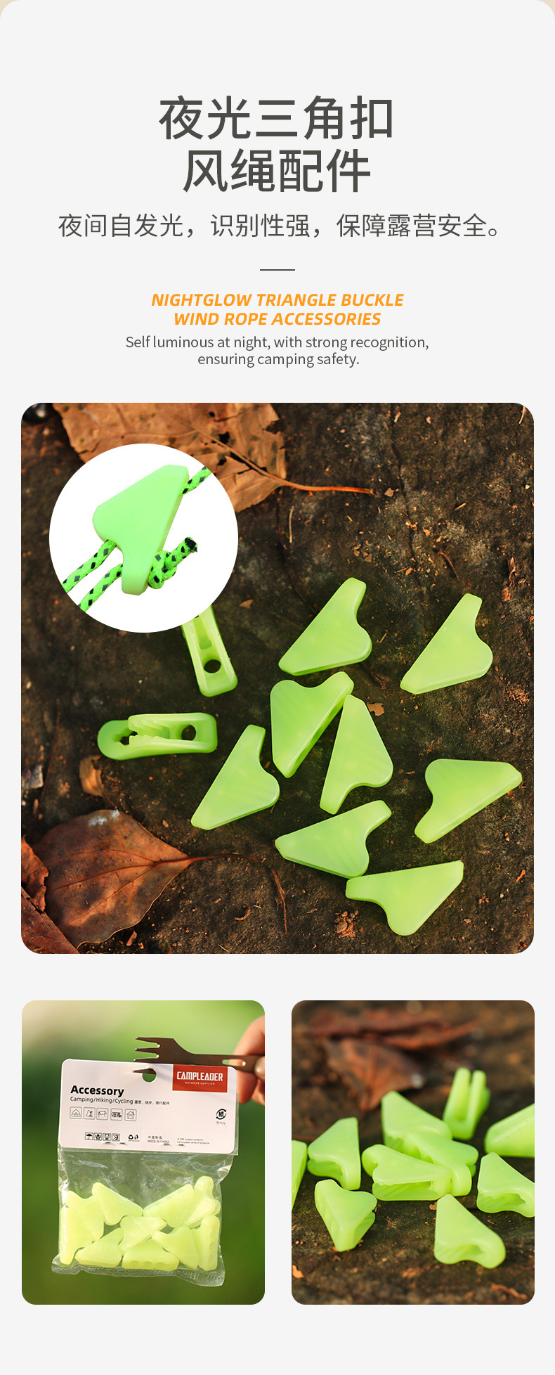 • (10 팩) 큰 빛나는 삼각형 버클 바람 로프 액세서리