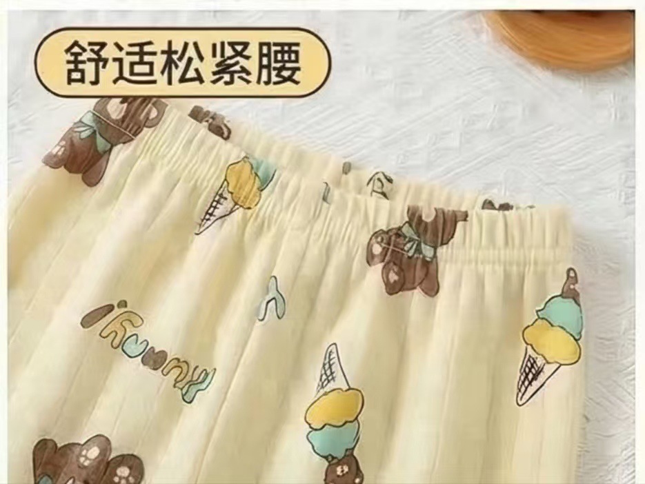 2025 여름 인스 베이비 코튼 홈웨어 아동 A급 세트 남아 여아 9부 소매 잠옷 아동 에어컨 의류스토어 가기
