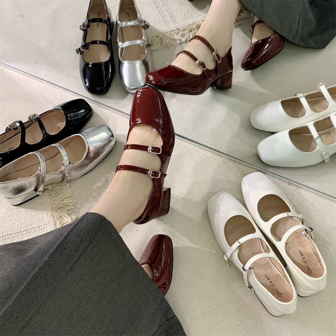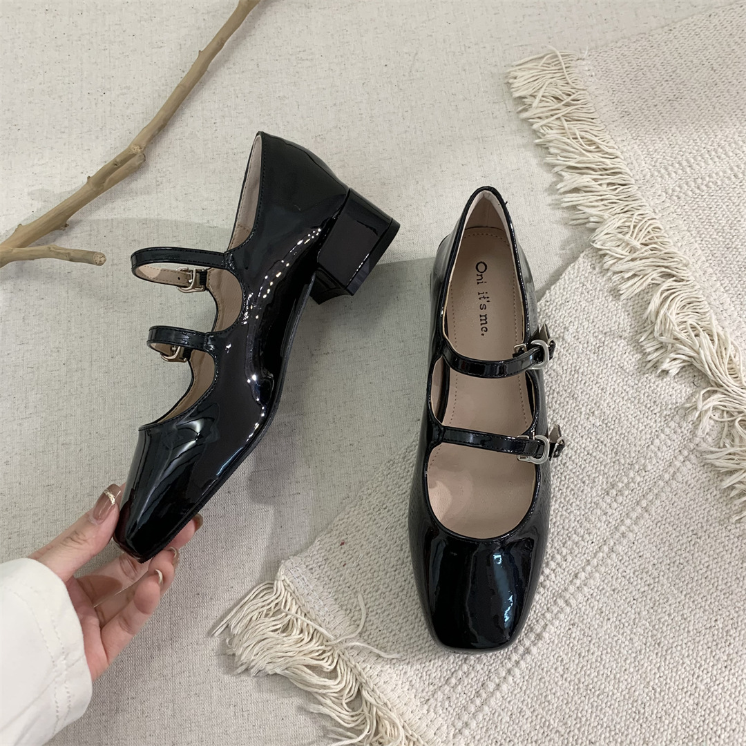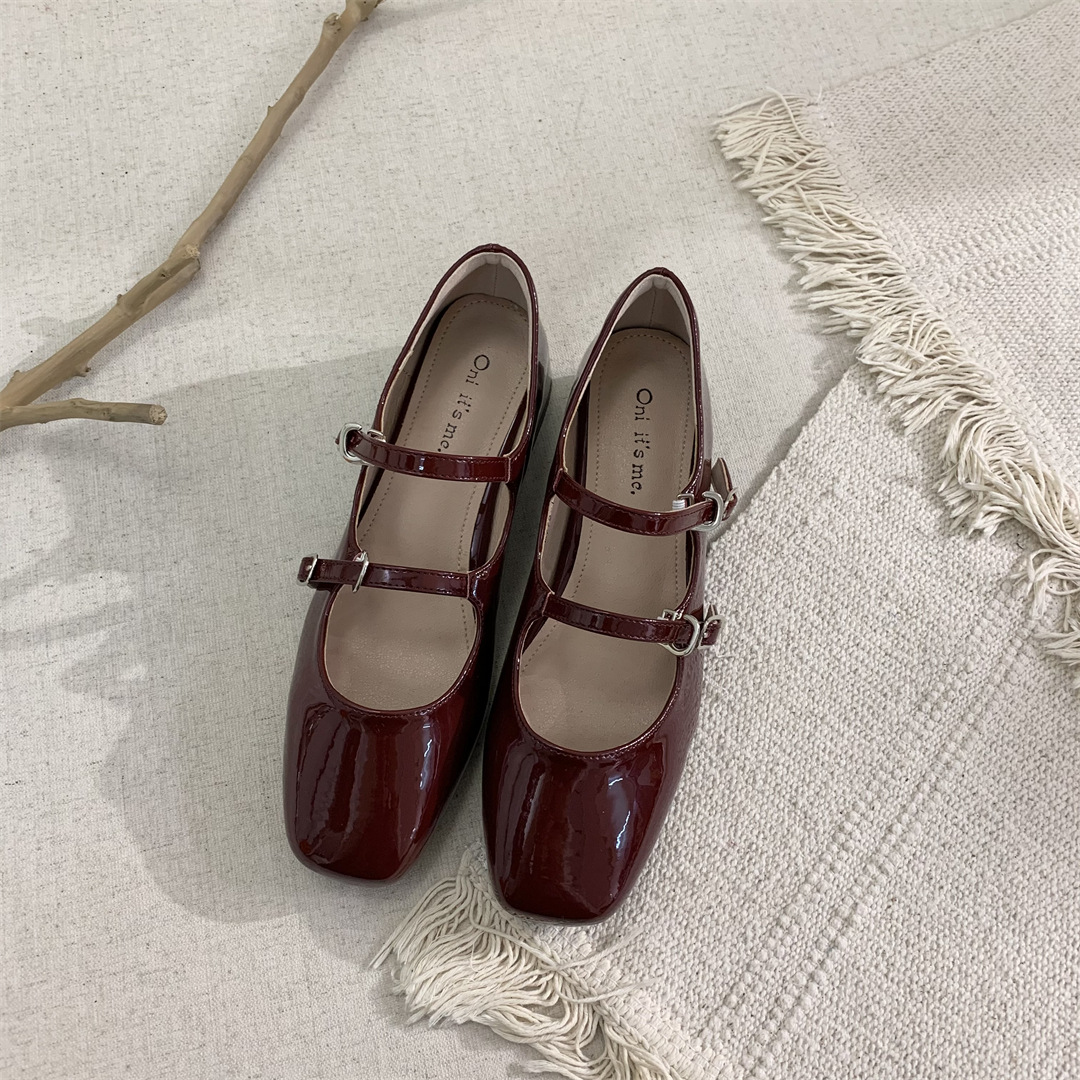 두꺼운 굽의 레드 메리제인 여성 가죽 신발 2025년 신상 여름 프렌치 스타일 블랙 봄 가을 단화스토어 가기