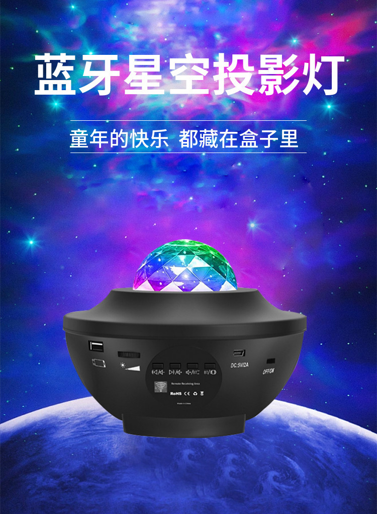 국경 간 별이 빛나는 하늘 레이저 별이 빛나는 하늘 프로젝션 램프 분위기 램프 블루투스 음악 USB 불꽃 그릇 모양의 물 패턴 램프 야간 조명