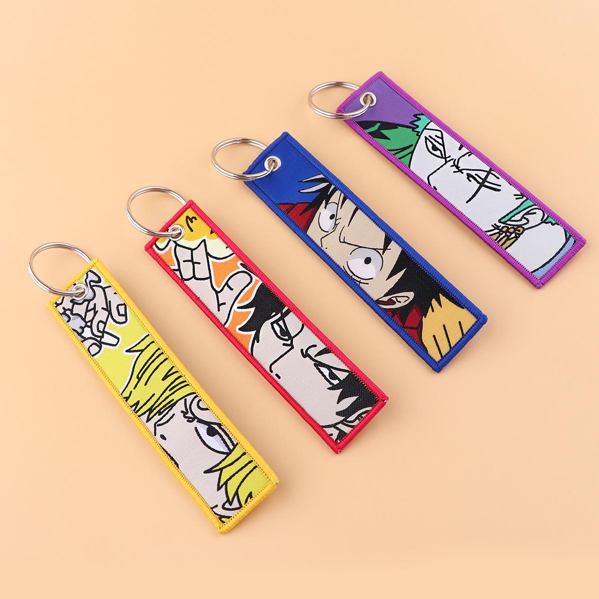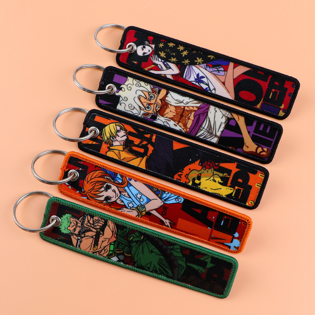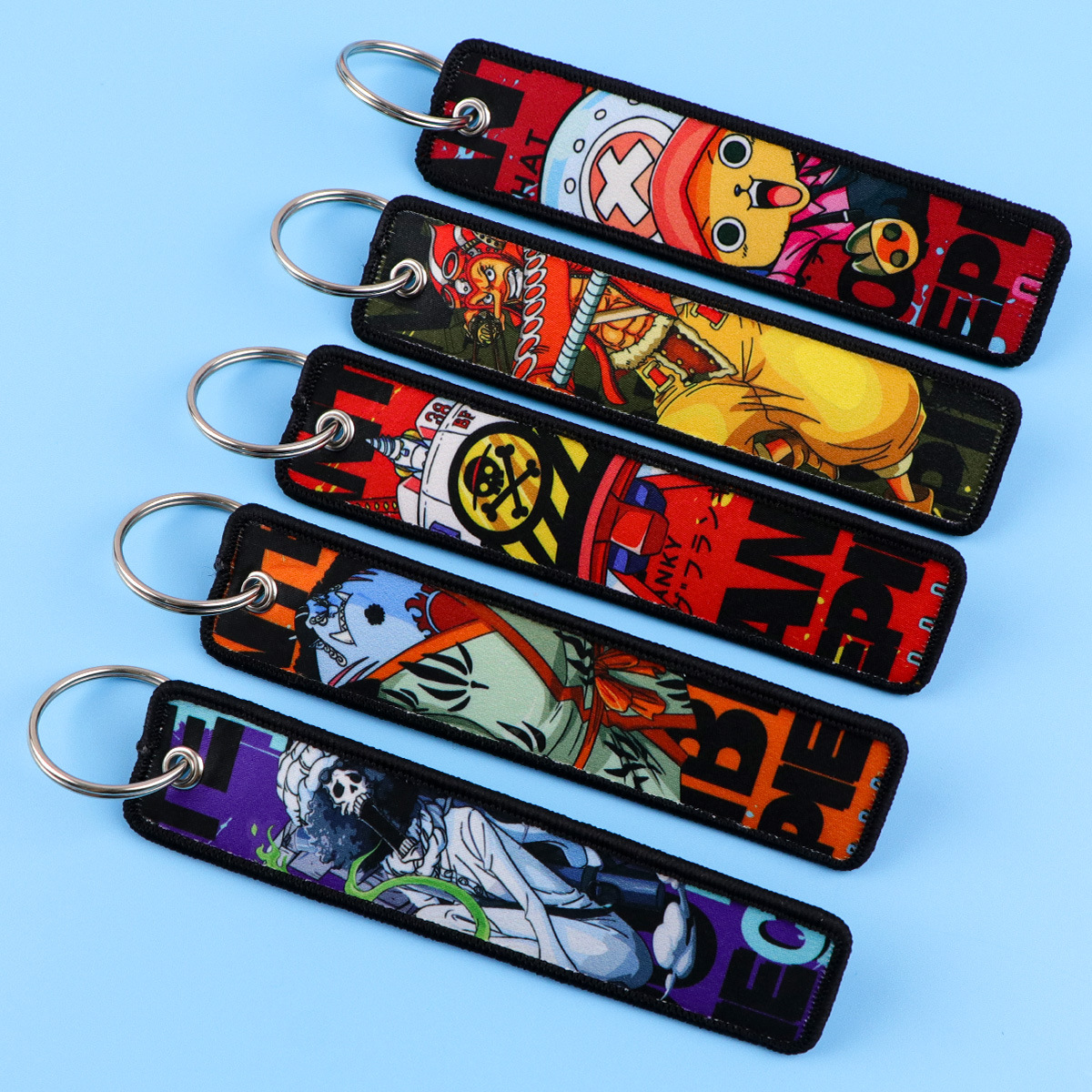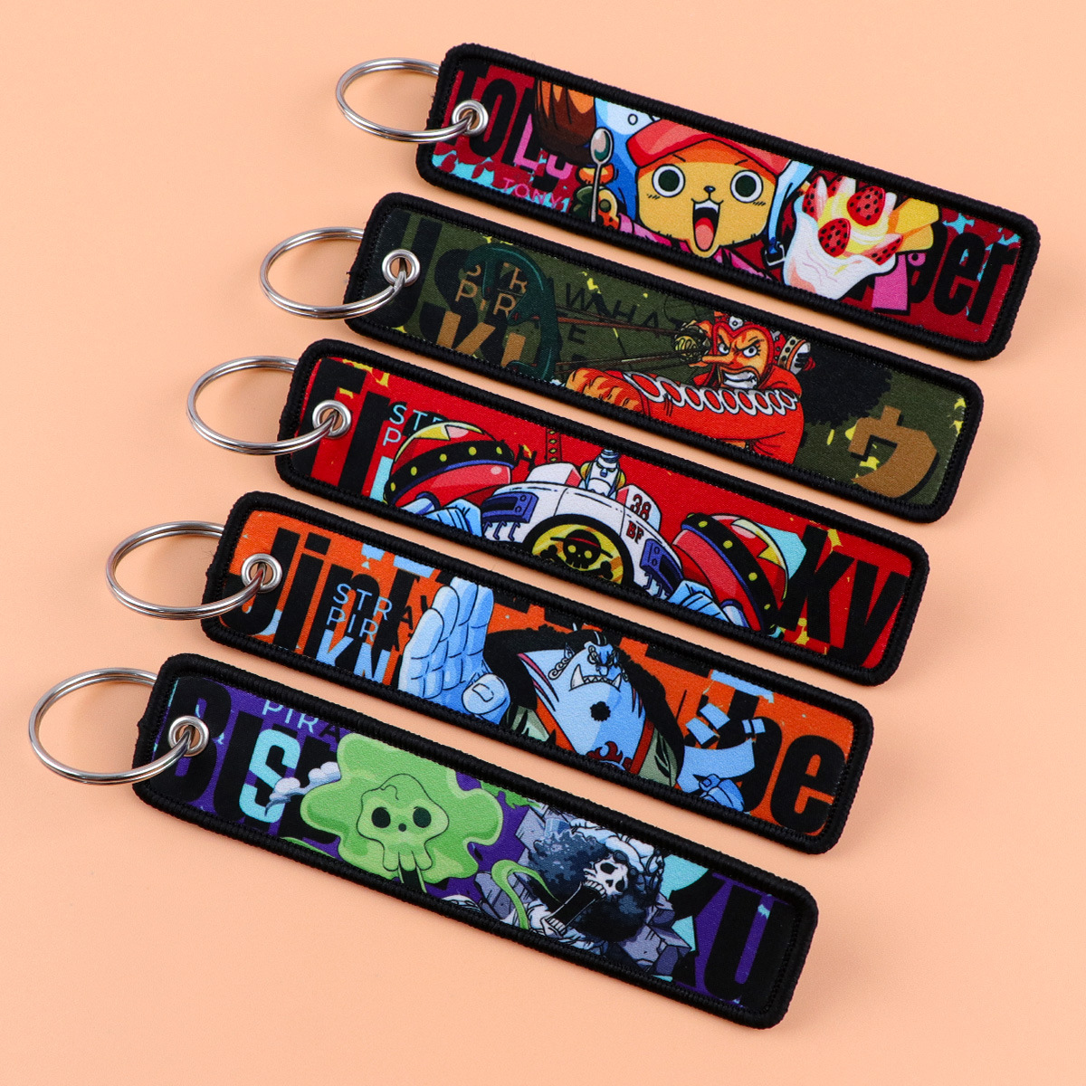 원피스 루피 직조 라벨 키체인 솜로우 만화 키체인 가방 장식 직조 패브릭 체인 휴일 선물스토어 가기