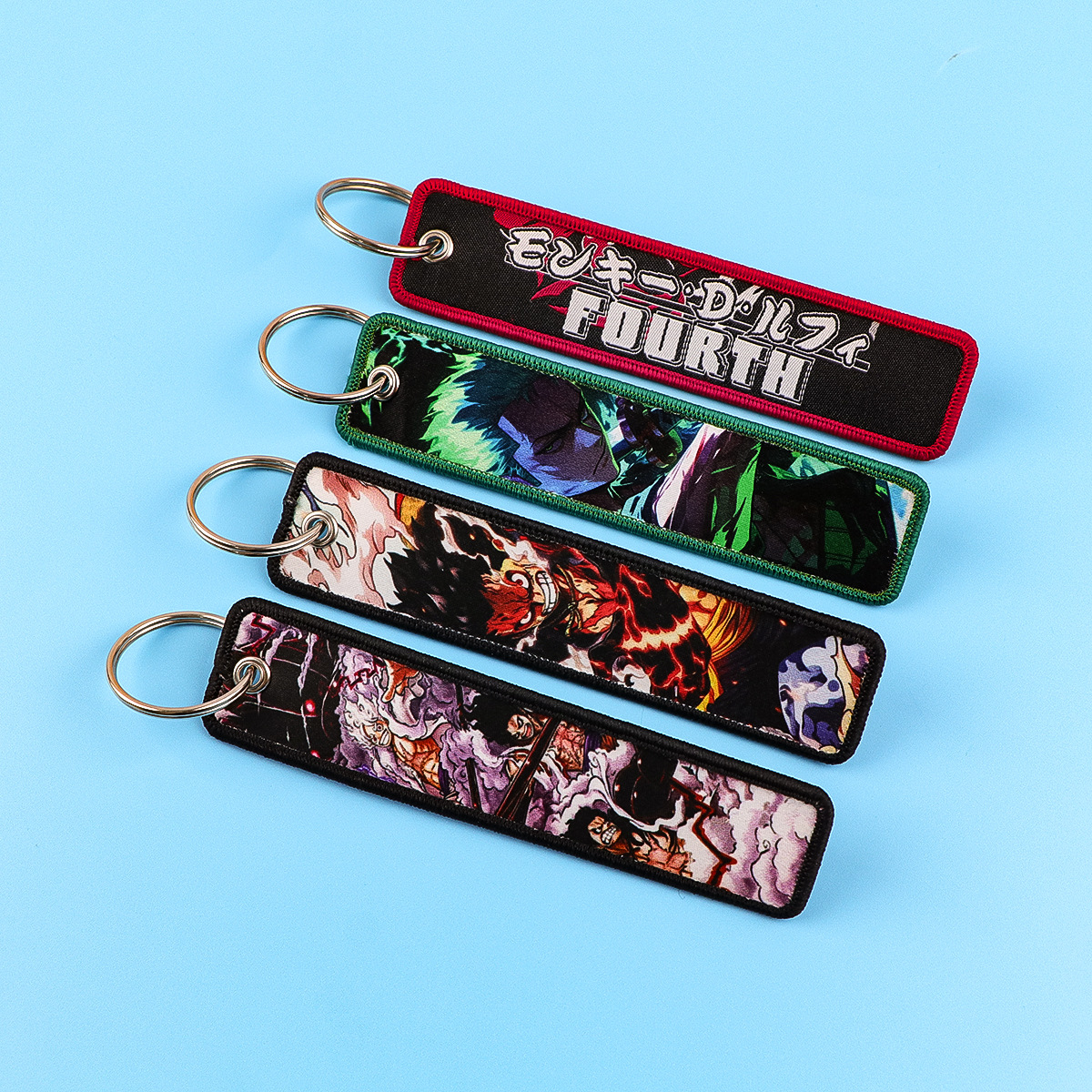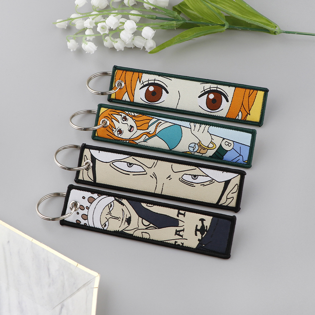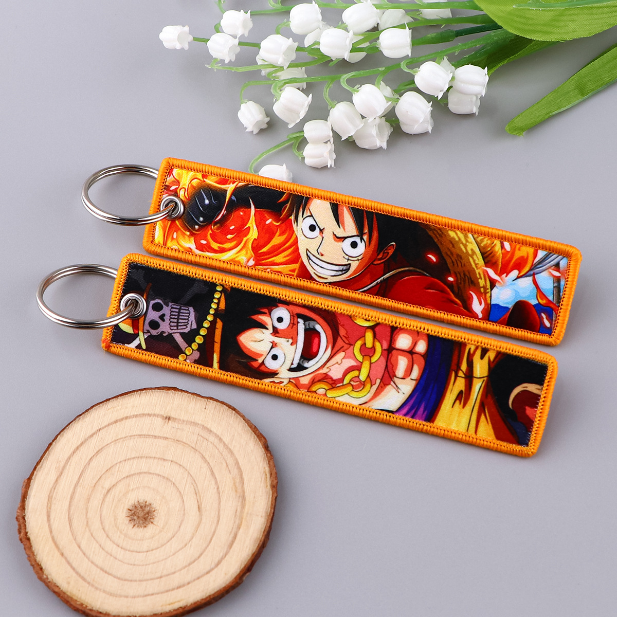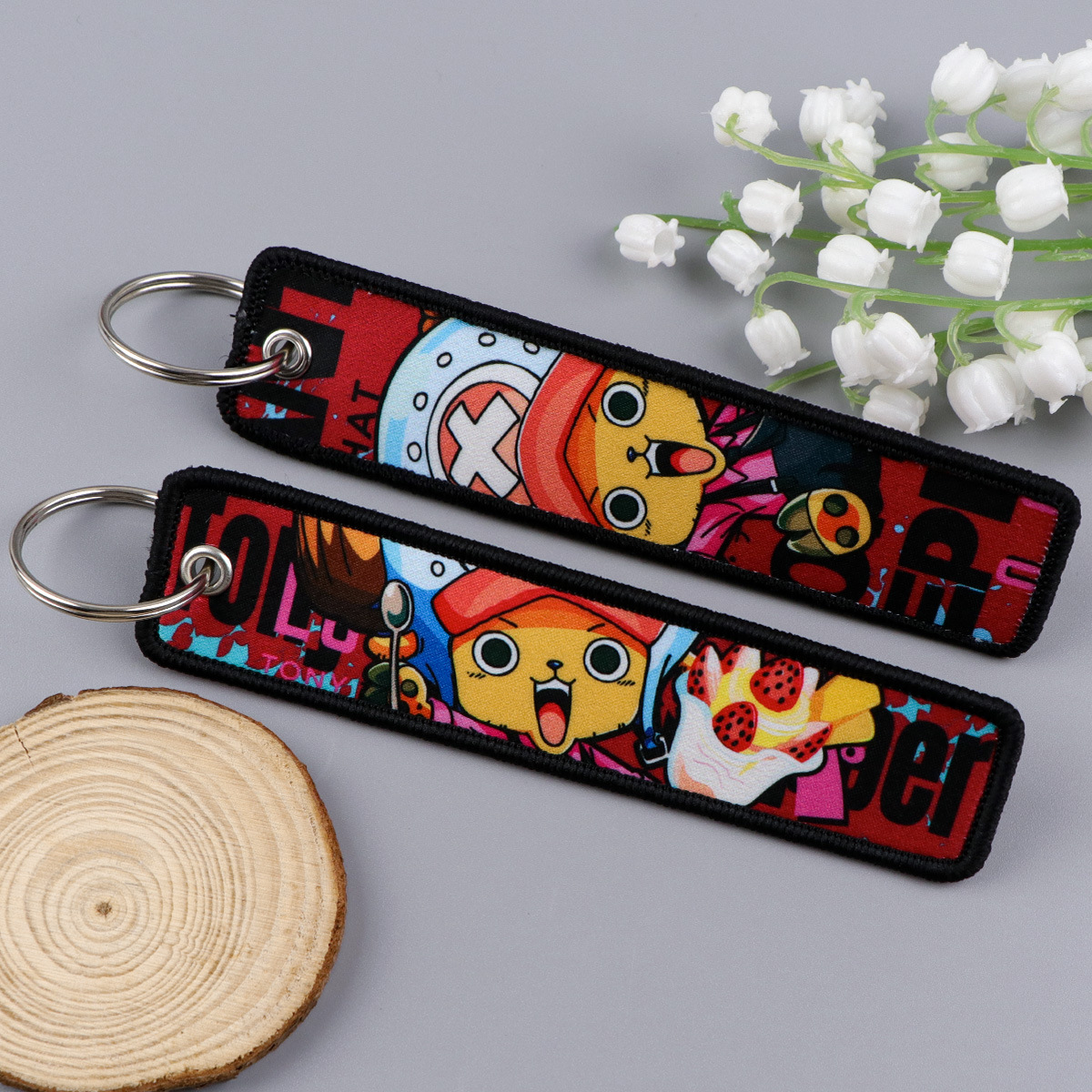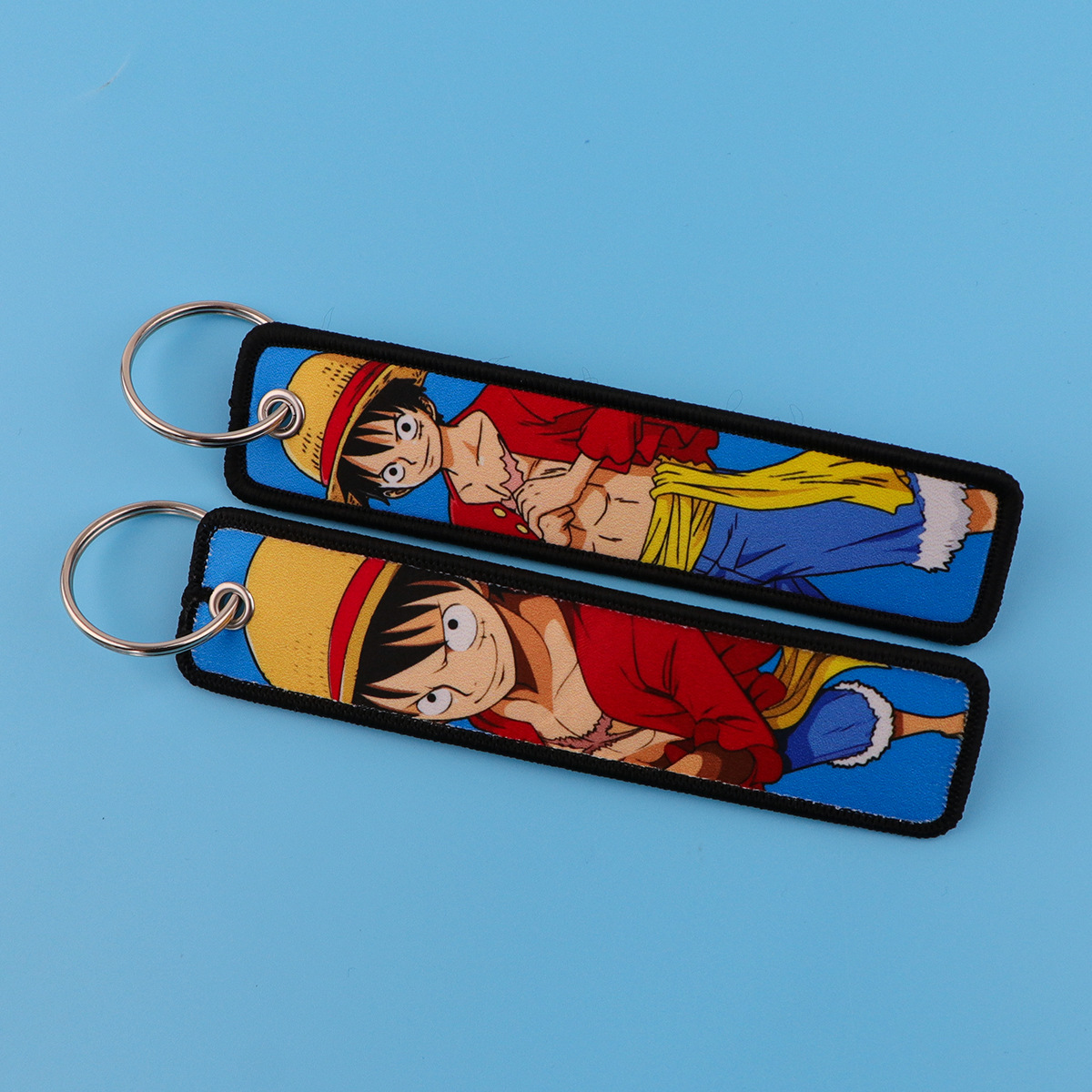 원피스 루피 직조 라벨 키체인 솜로우 만화 키체인 가방 장식 직조 패브릭 체인 휴일 선물스토어 가기