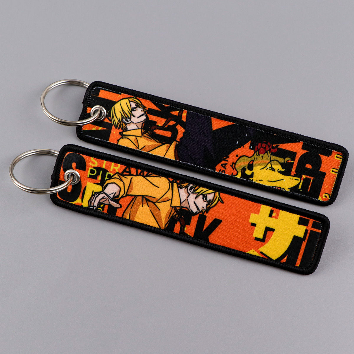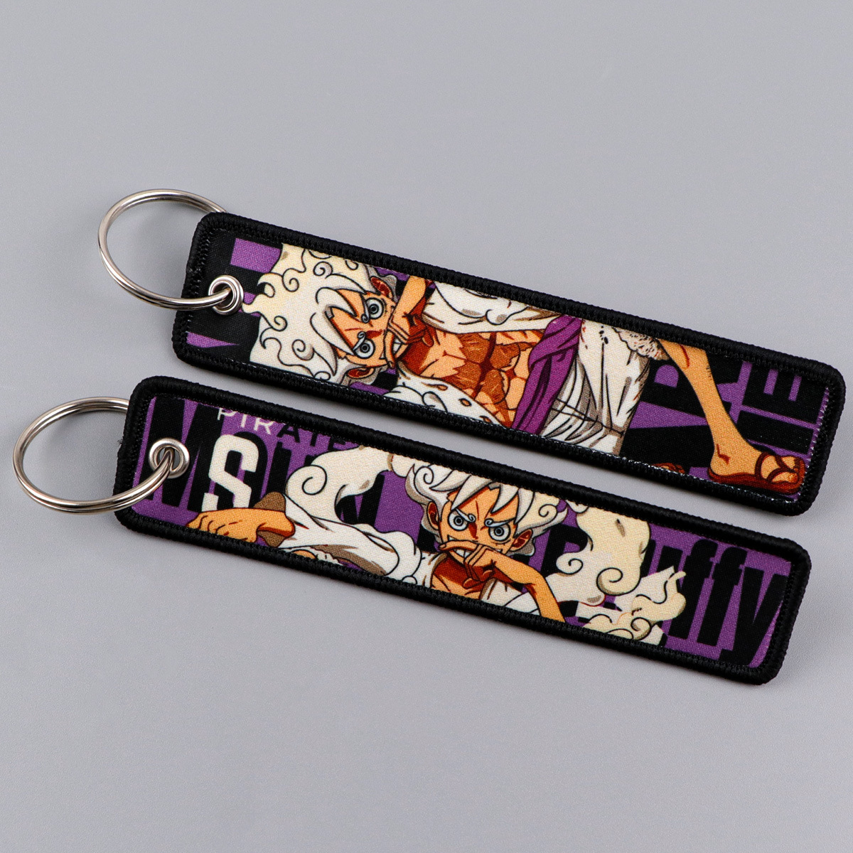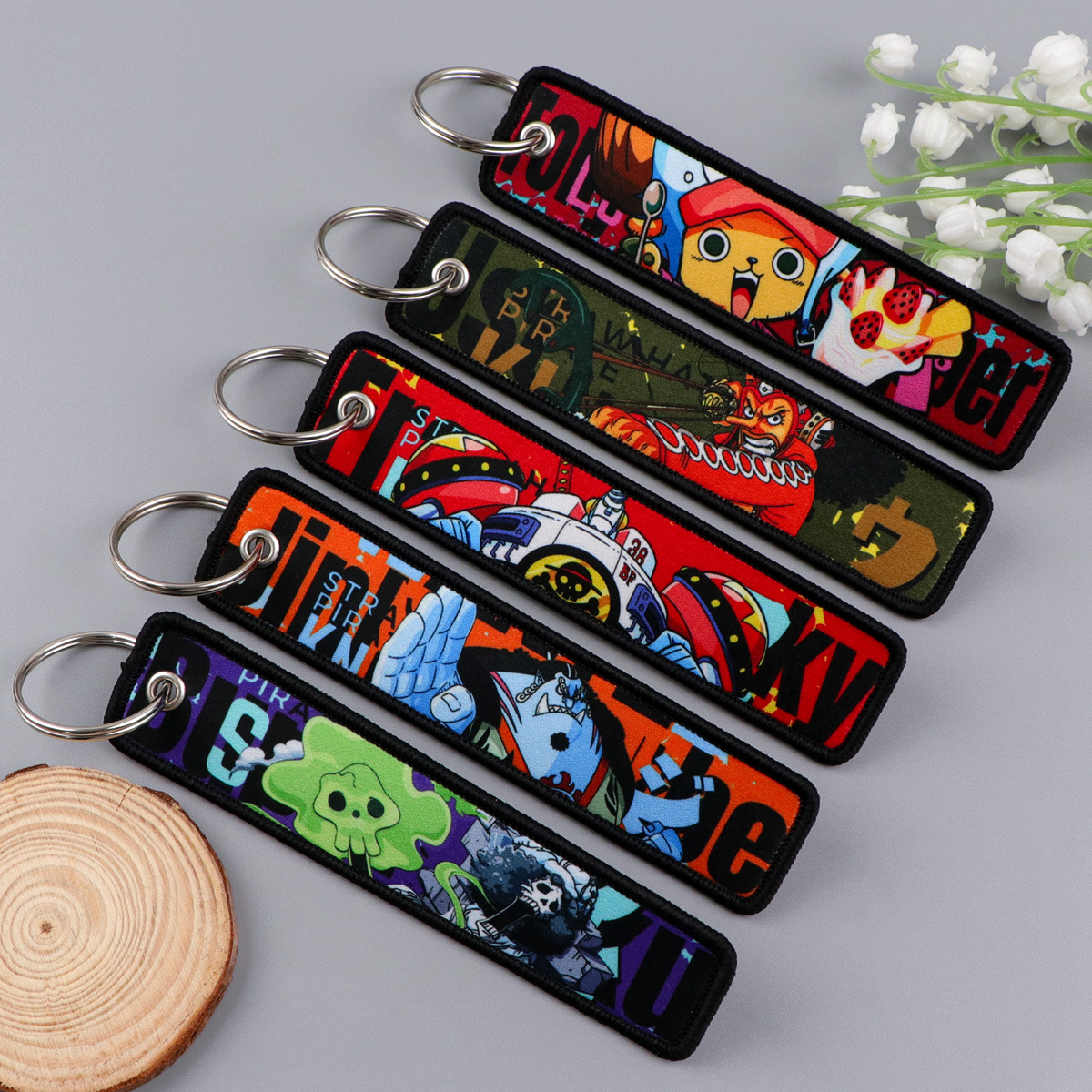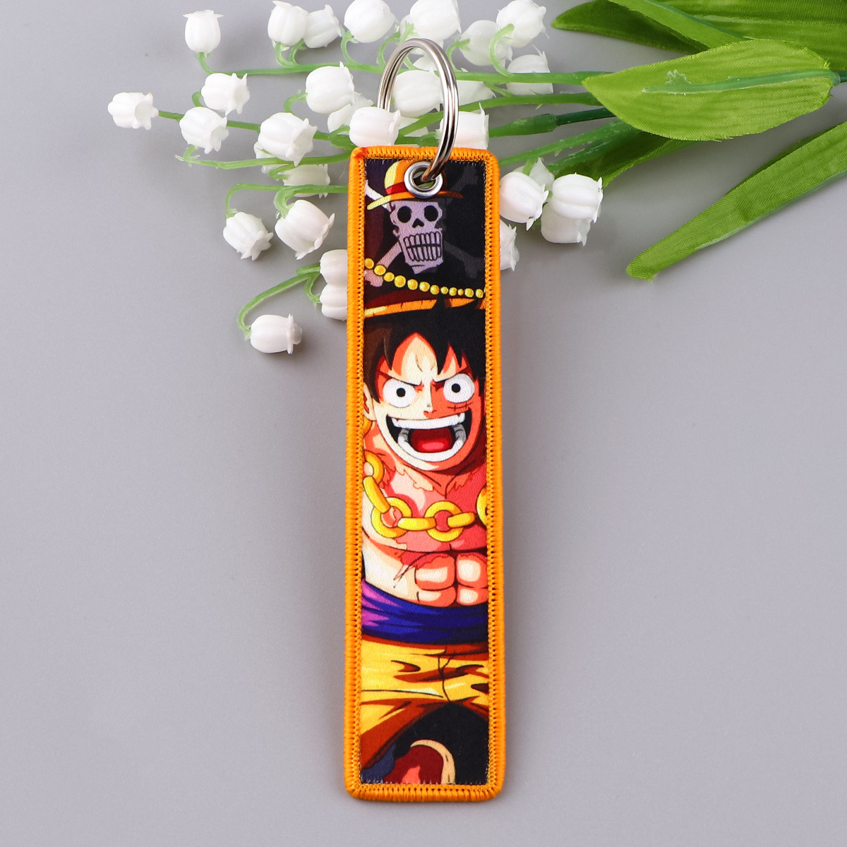 원피스 루피 직조 라벨 키체인 솜로우 만화 키체인 가방 장식 직조 패브릭 체인 휴일 선물스토어 가기