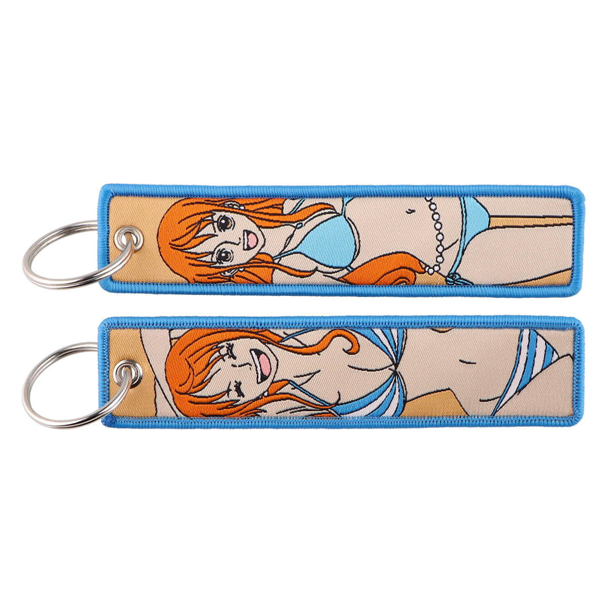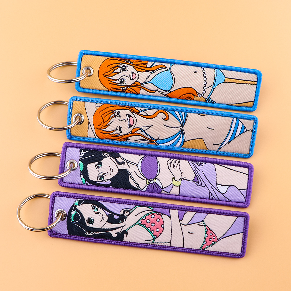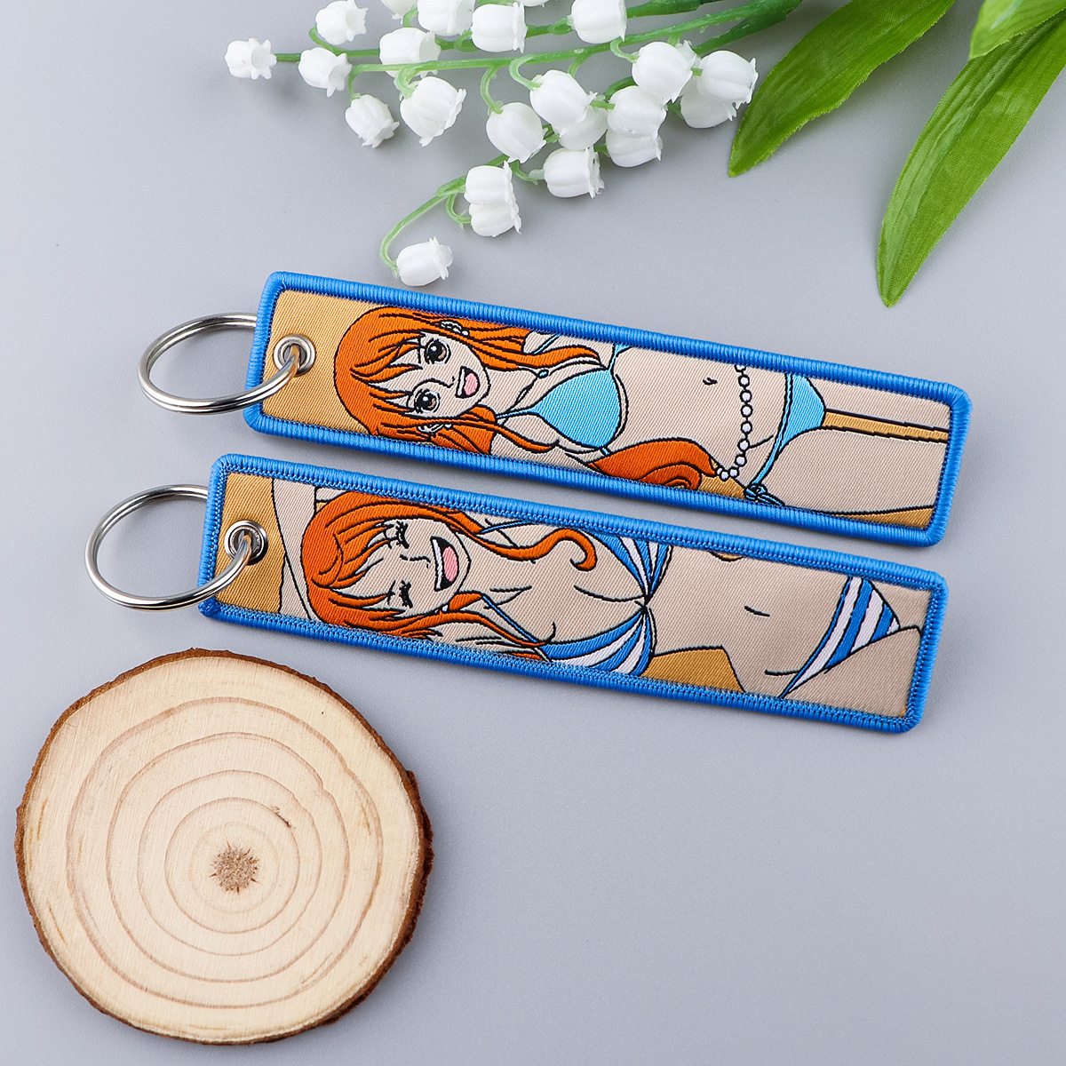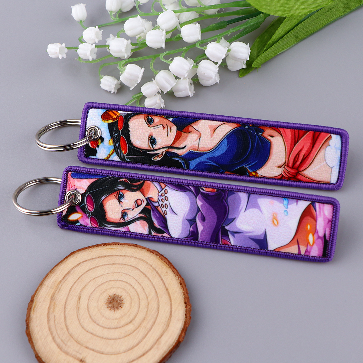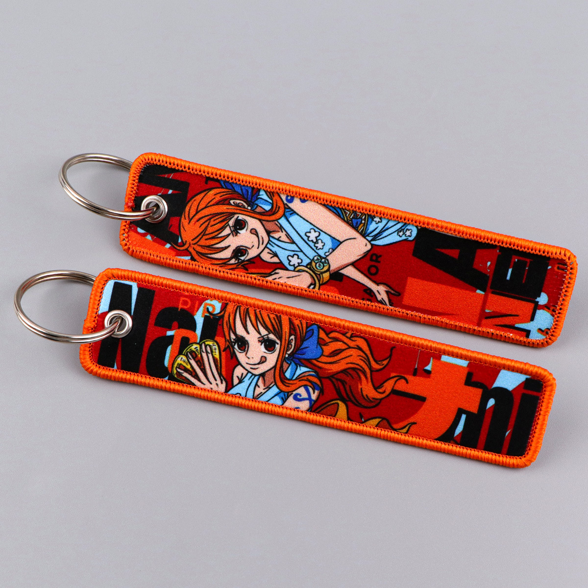 원피스 루피 직조 라벨 키체인 솜로우 만화 키체인 가방 장식 직조 패브릭 체인 휴일 선물스토어 가기