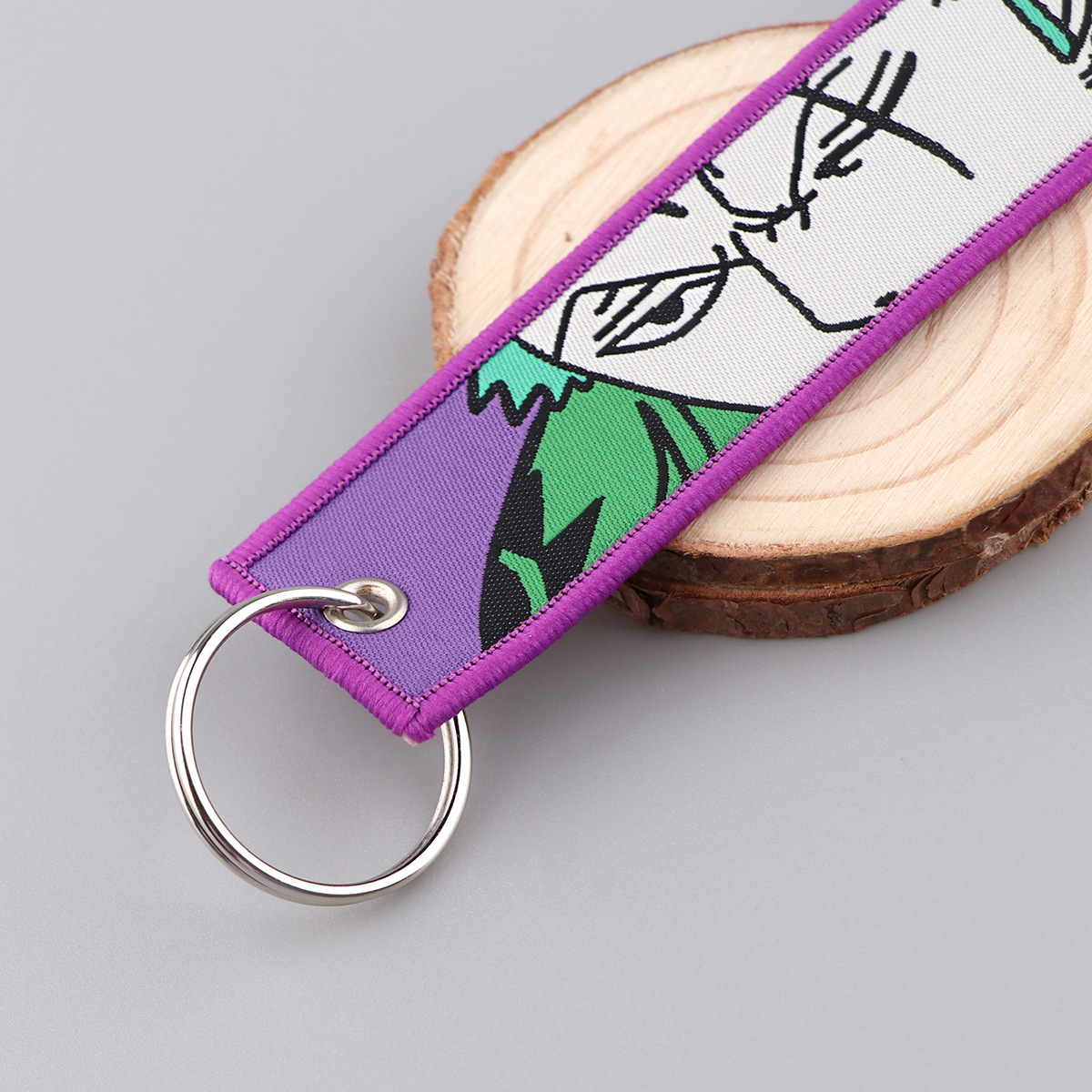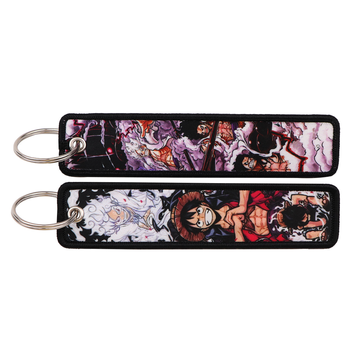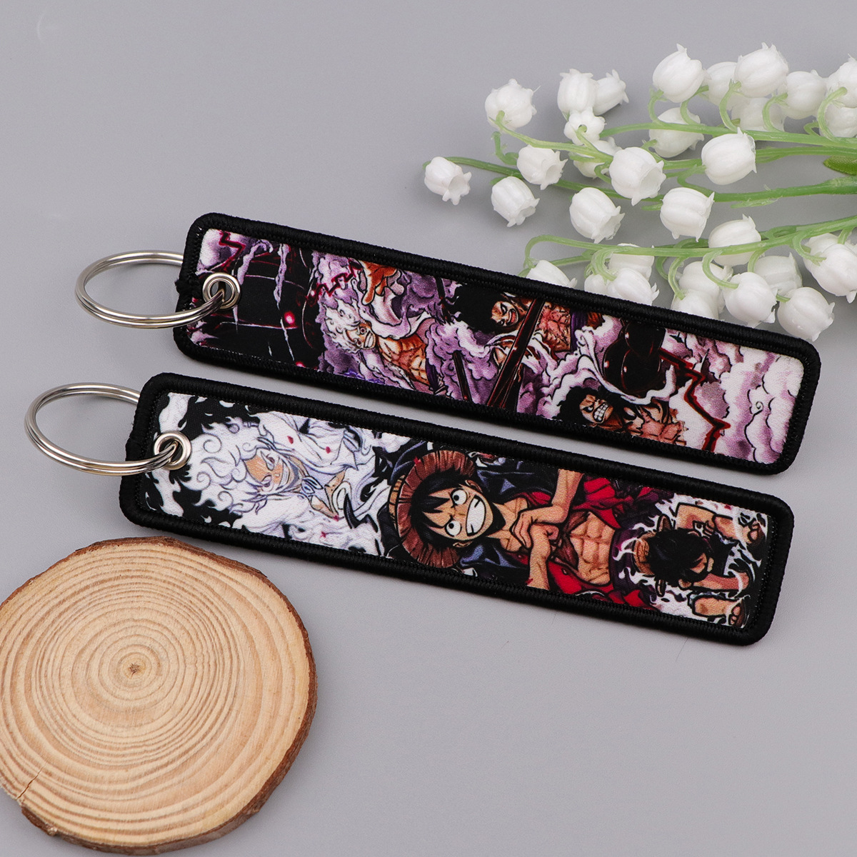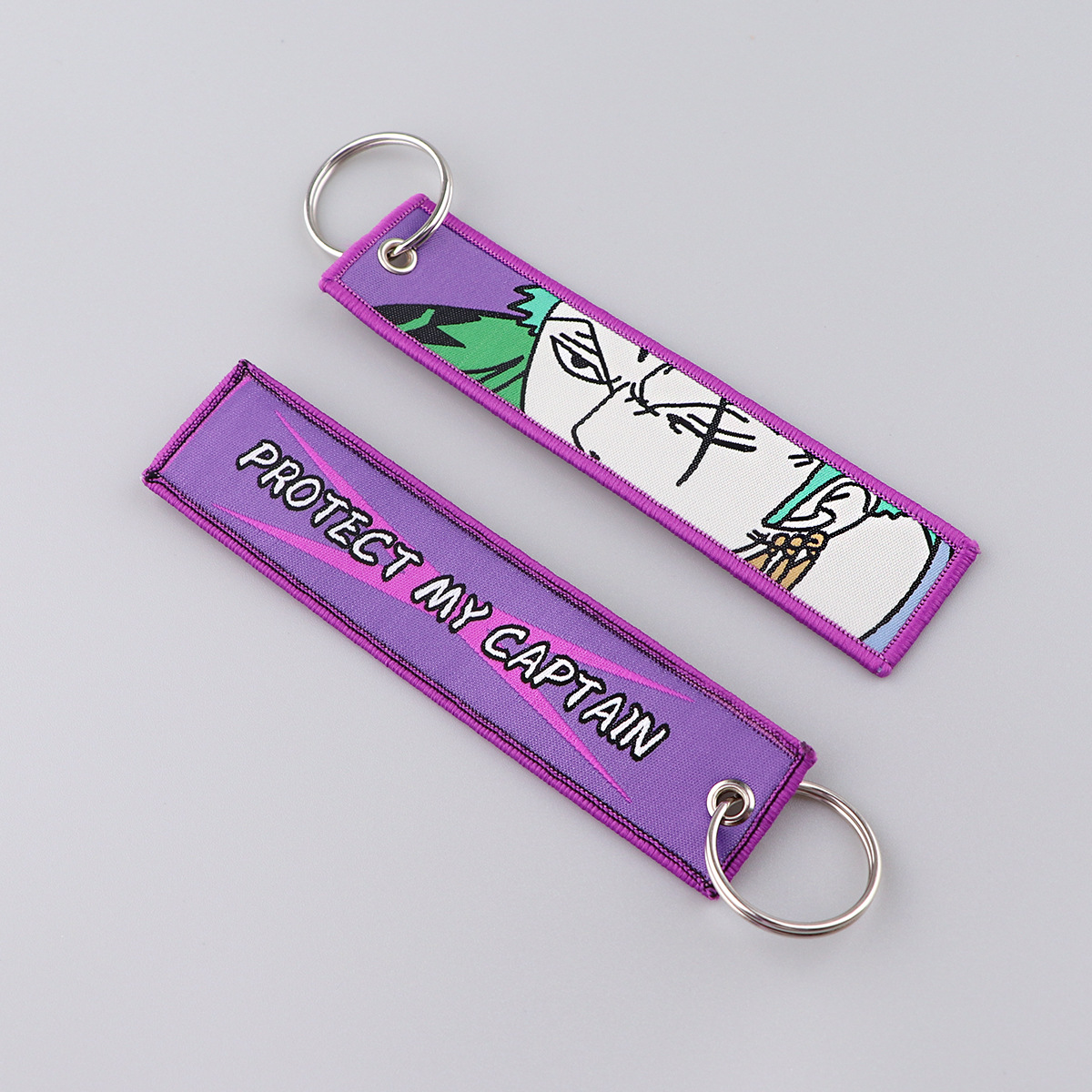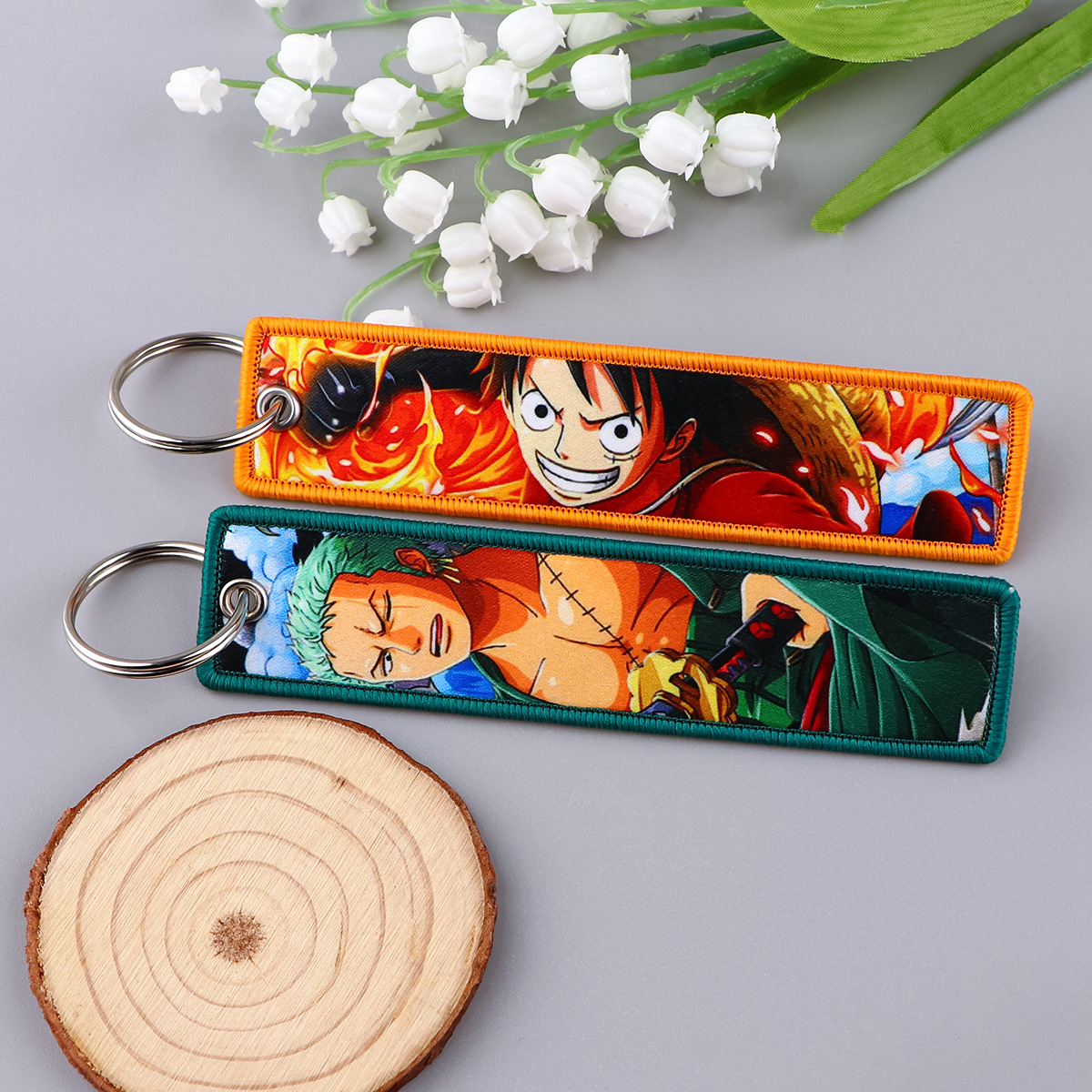 원피스 루피 직조 라벨 키체인 솜로우 만화 키체인 가방 장식 직조 패브릭 체인 휴일 선물