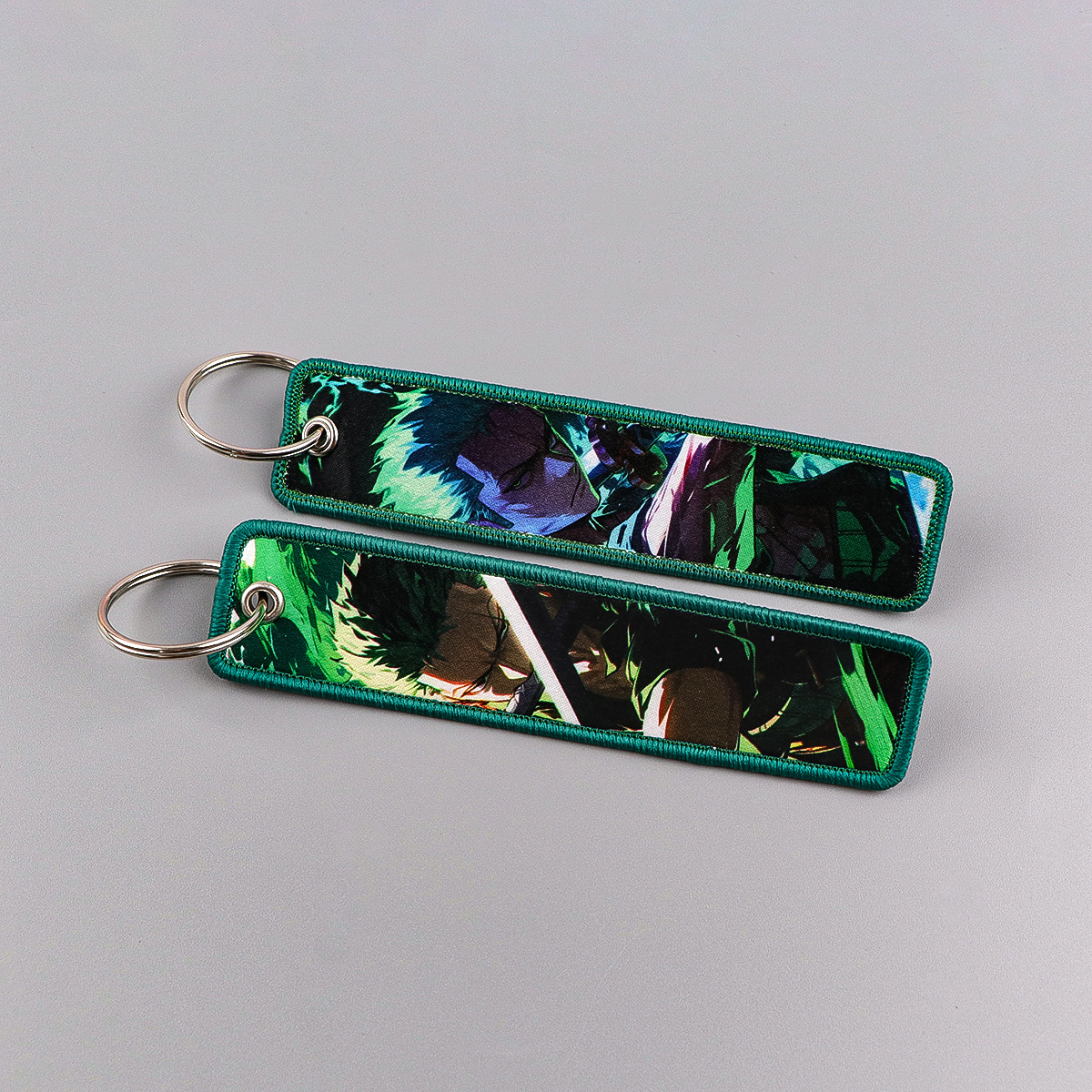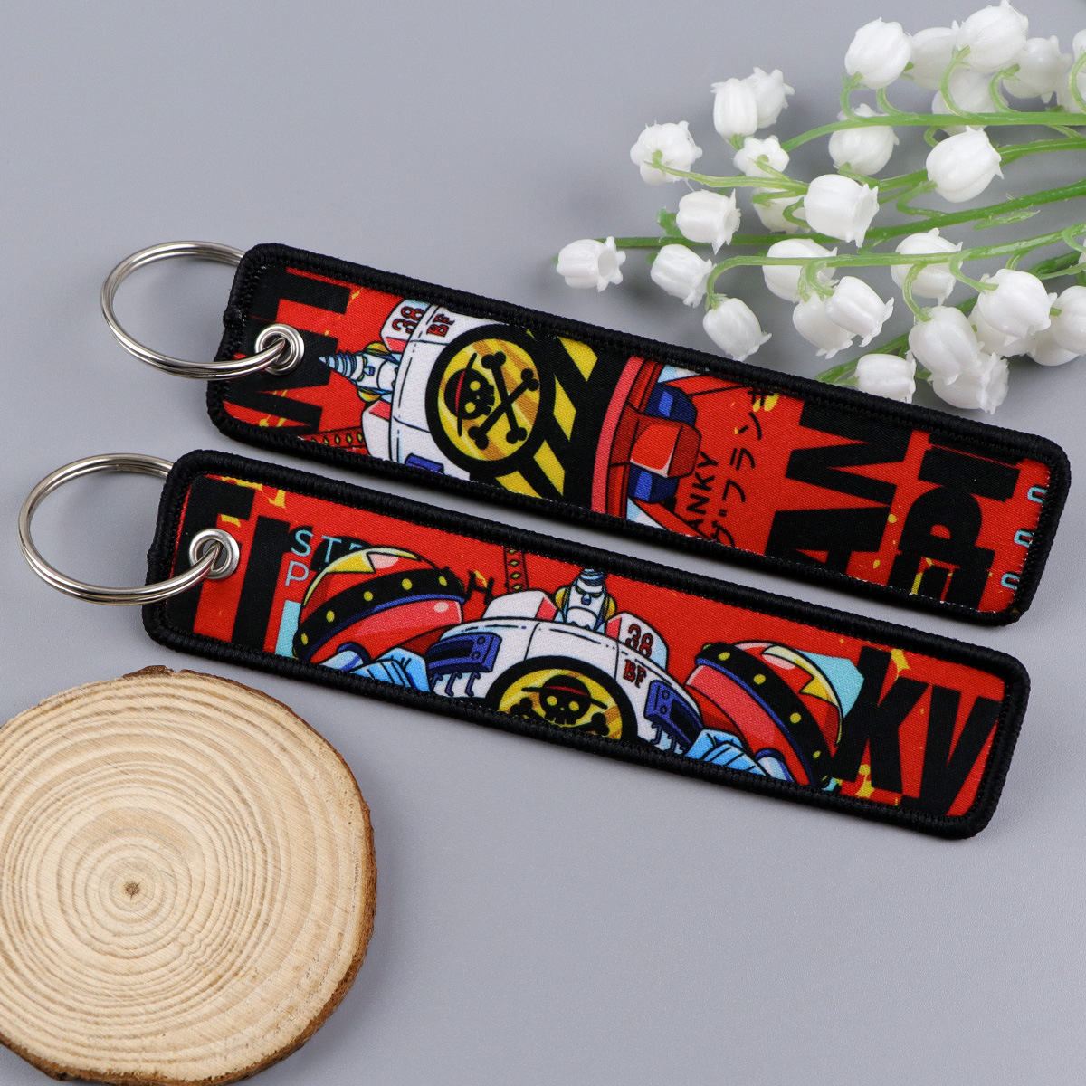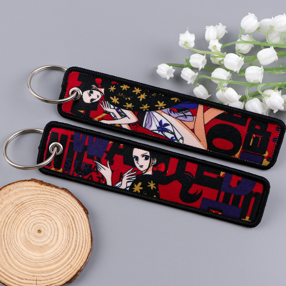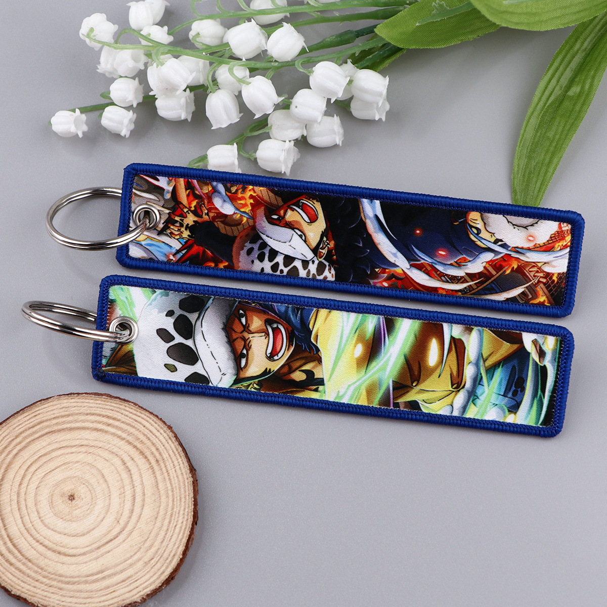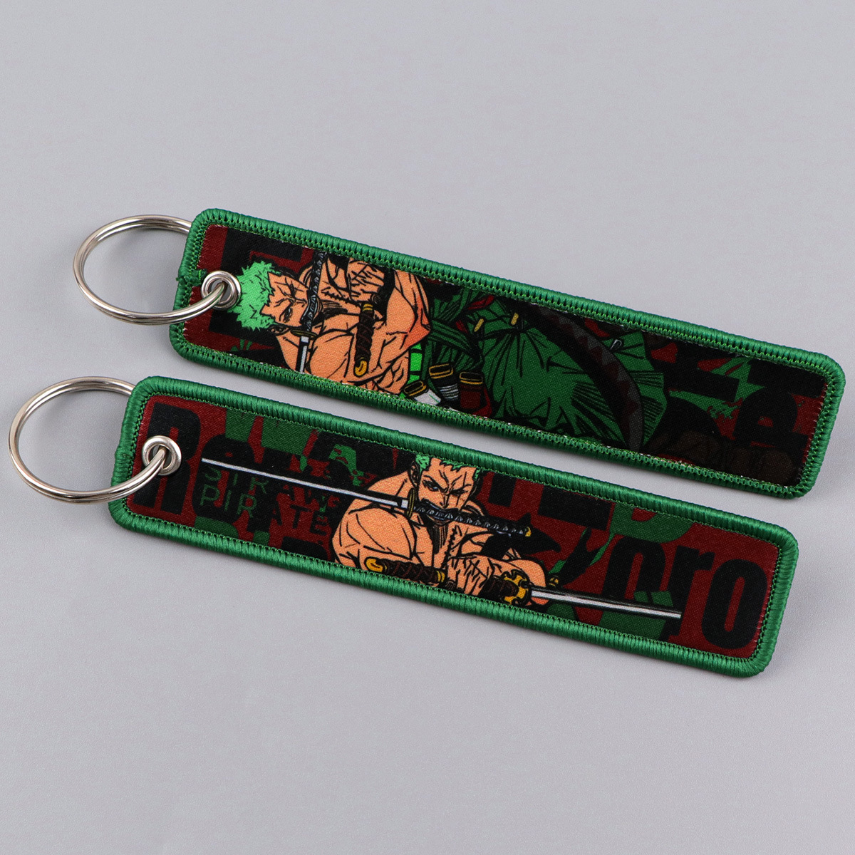 원피스 루피 직조 라벨 키체인 솜로우 만화 키체인 가방 장식 직조 패브릭 체인 휴일 선물
