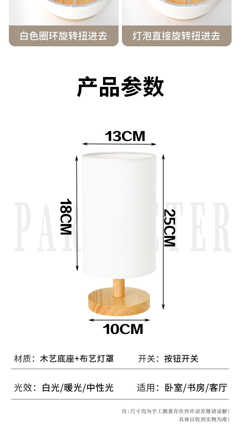 북유럽 로그 천 커버 테이블 램프 현대 창조적 인 장식 침실 USB 충전 원격 제어 따뜻한 눈 보호 야간 조명