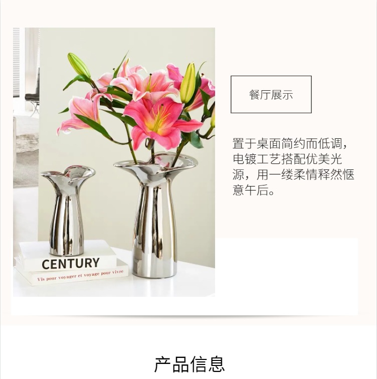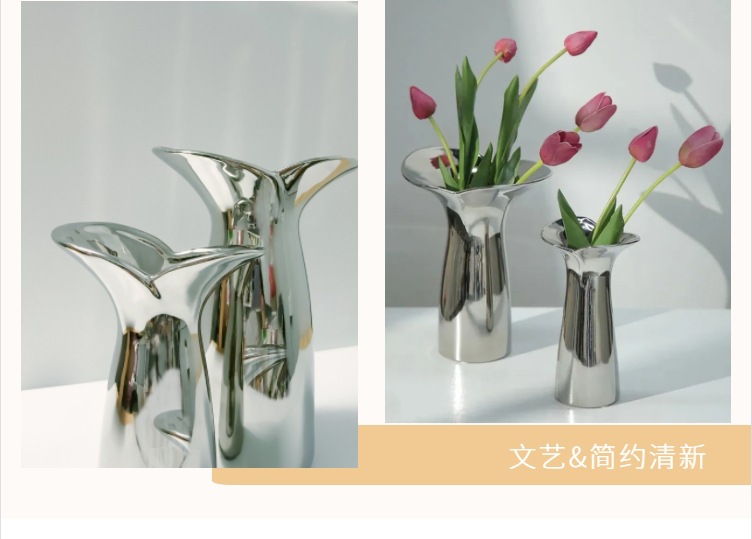 북유럽 집 조용한 스타일 꽃병 거실 식탁 장식 집들이 선물 집 장식 전기 도금 꽃꽂이